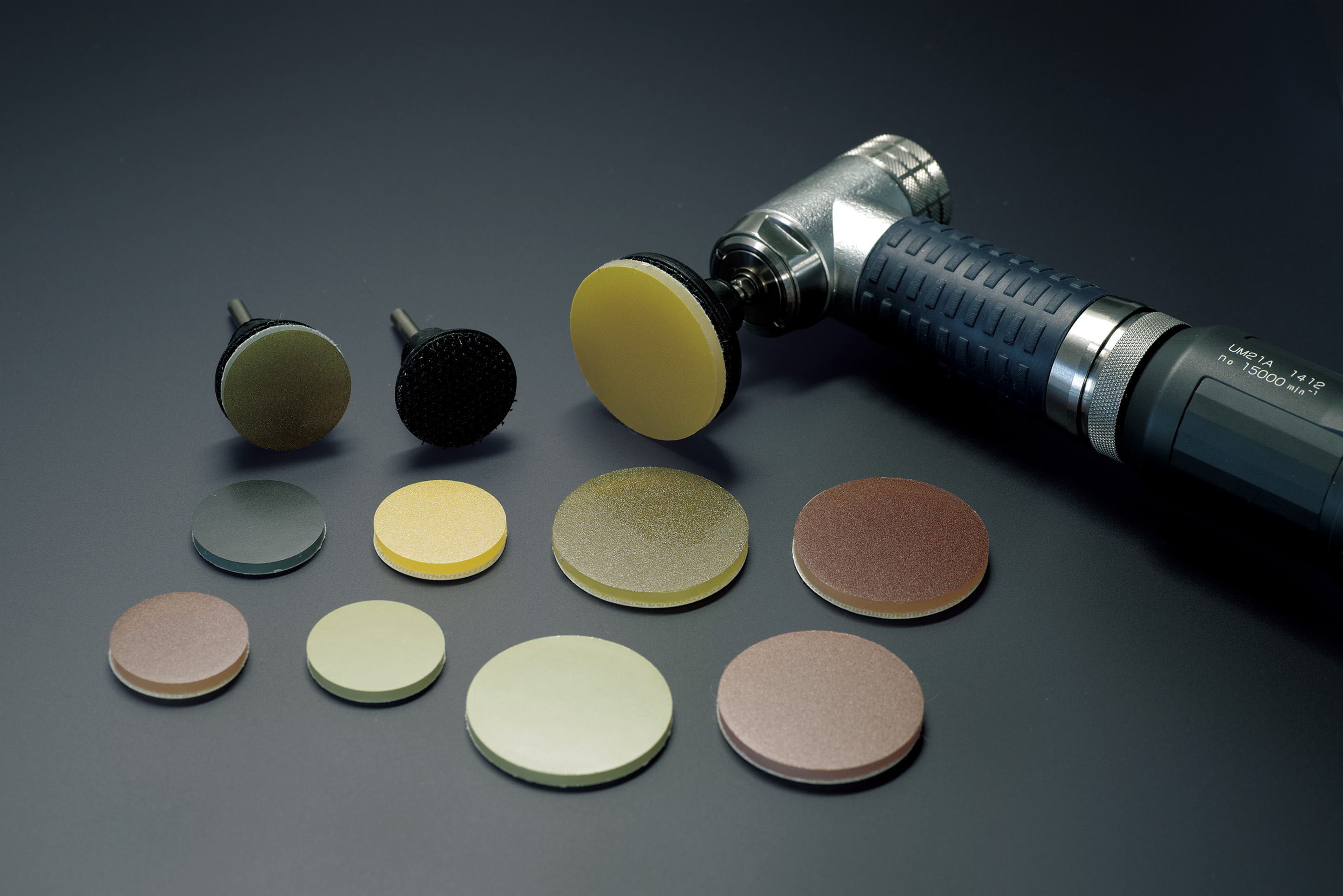 ダイヤモンドポリッシングシートをアングルグラインダー用に加工したディスクです。 裏面にはシリコンパッドとマジックテープ加工を施し、ソフトで均一な仕上げ面が得られます。