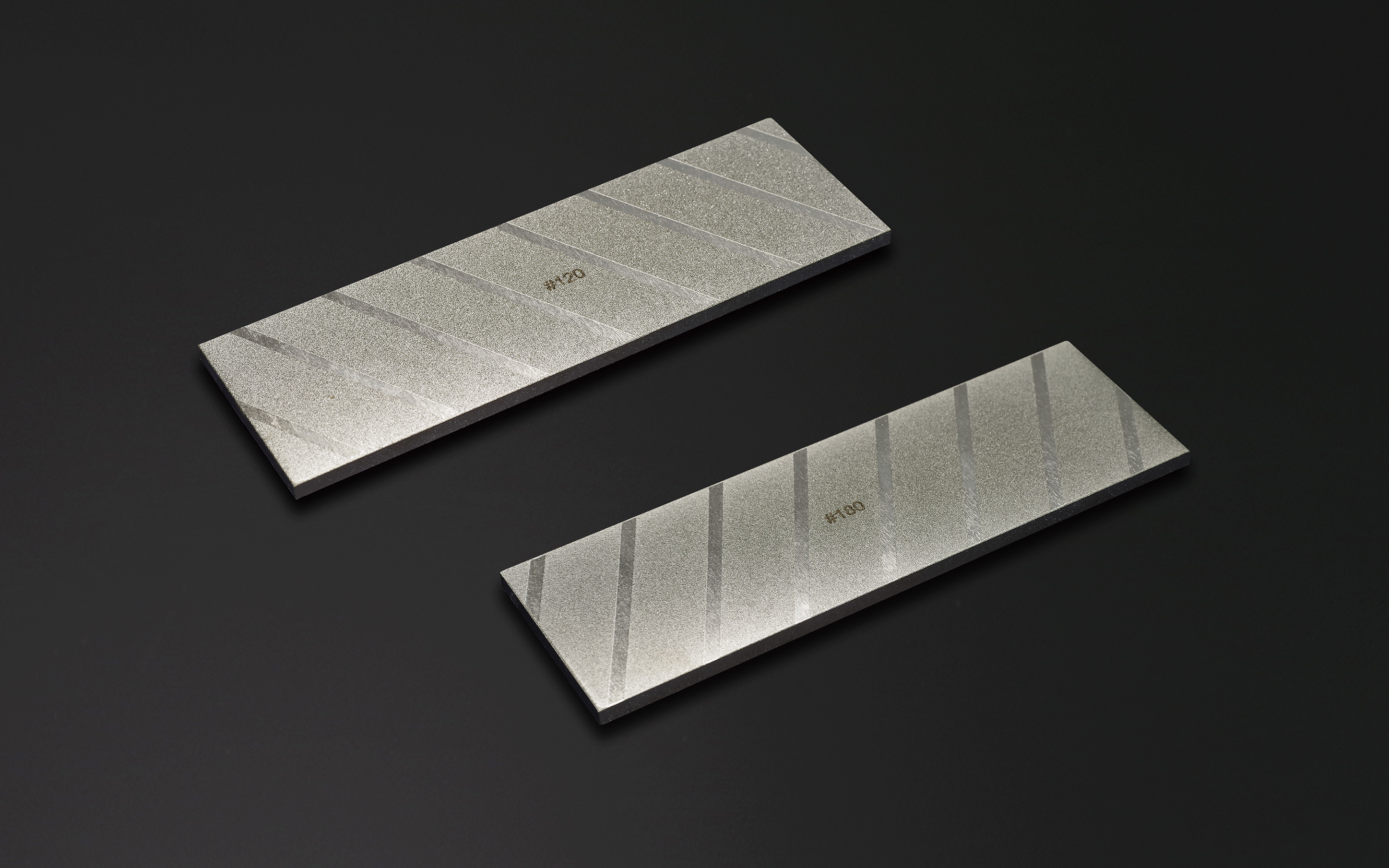 砥石、ゴム砥石などの成形、目出しに使用します。 表面の粒度が#120で、裏面の粒度が#180 大きめのサイズで重量もあり使いやすく、目詰まりを防ぐスリット入り。