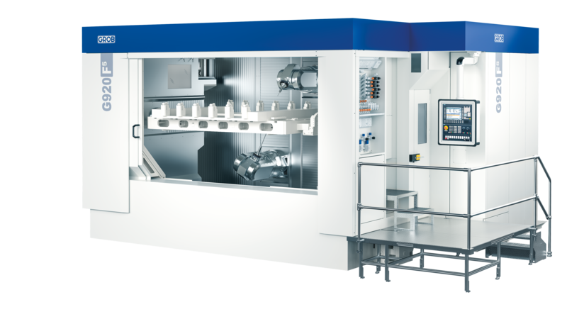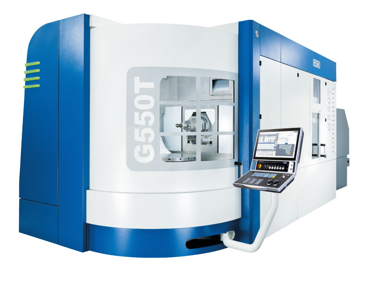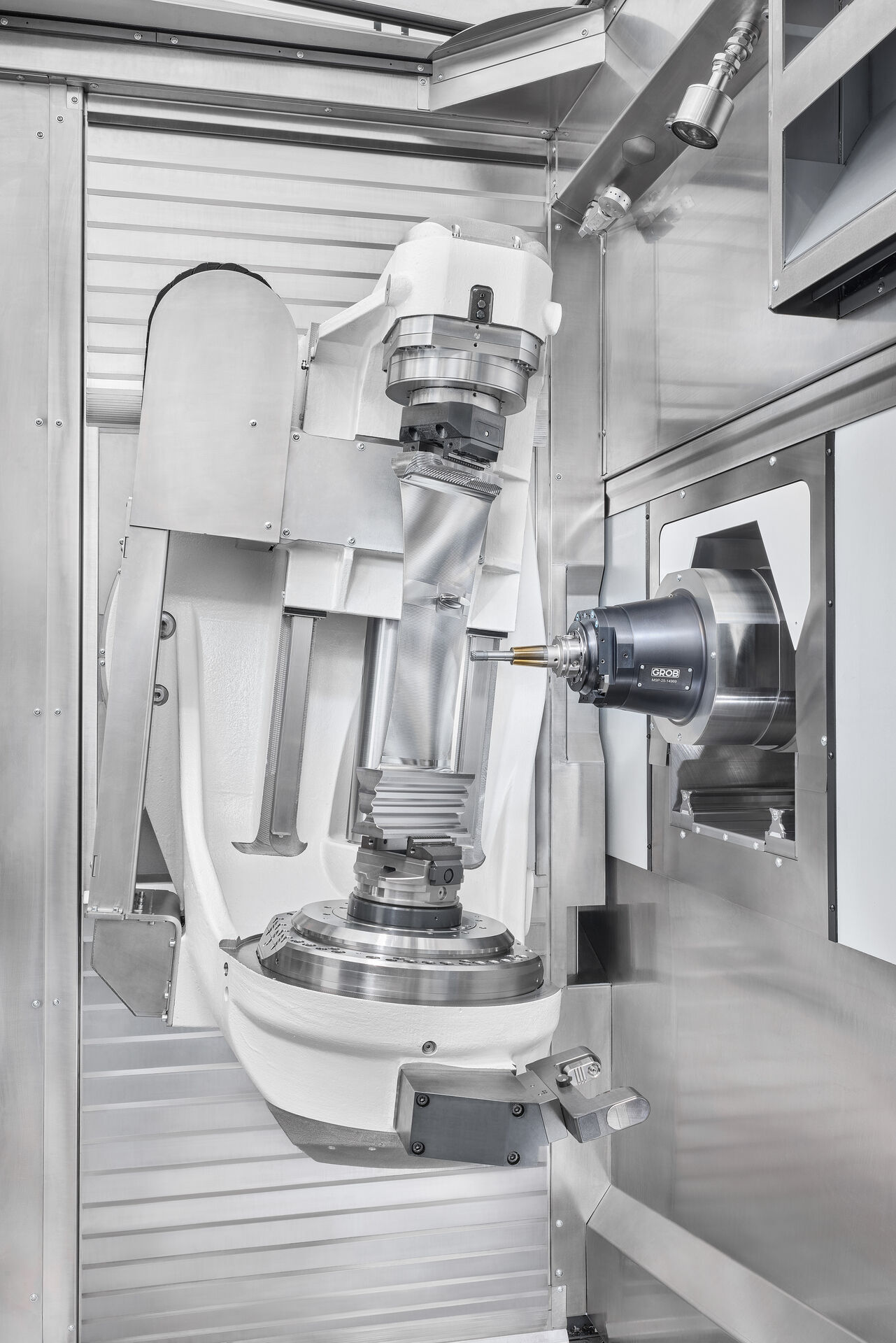 マシニングセンタ単体についてもGROB独自のユニークな技術を提供しています。クーラントノズルが工具先端点を自動追尾するシステム搭載したHSK-A80スピンドル、ロングブレード向けにワーク両端からクランプ可能なヴァリオテーブル、旋削加工付きマシニングセンタによるギアスカイビング加工、自動化や他のシステムとも連携可能なIoTソリューションなど、加工技術からソフトウェアまで幅広く提案しています。