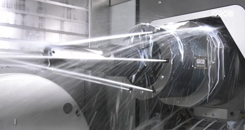GROB内製スピンドルHSK-A80は、自動調整クーラントノズルにより切削刃先を的確にとらえ冷却・洗浄し、安定した加工を実現。航空業界のニーズに応えます!