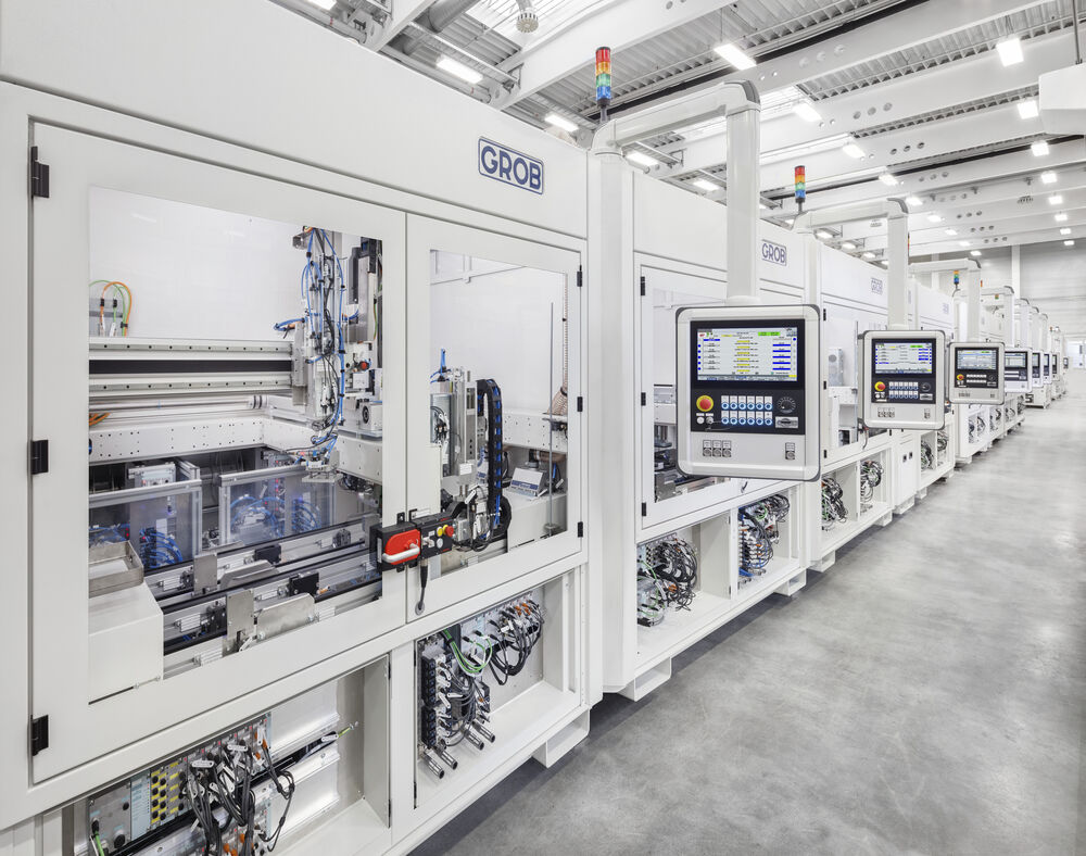 GROBは横形同時5軸のマシニングセンタだけでなく、ターンキーソリューションとして複合的な自動化提案を行っています。製造業での人手不足が話題ですが、パレットチェンジャーからロボットと複数の設備を統合した自動生産設備まで、柔軟性確保や加工工程の見える化も含めた省人化・無人化提案でお客様の効率的な生産を実現します。