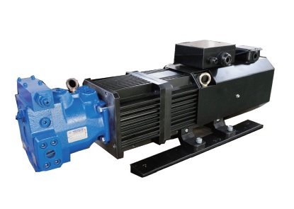 消費電力の削減が可能なサーボモーター付の油圧ポンプ。 消費電力が従来のオイルポンプと比べて消費電力を約80%削減可能です。