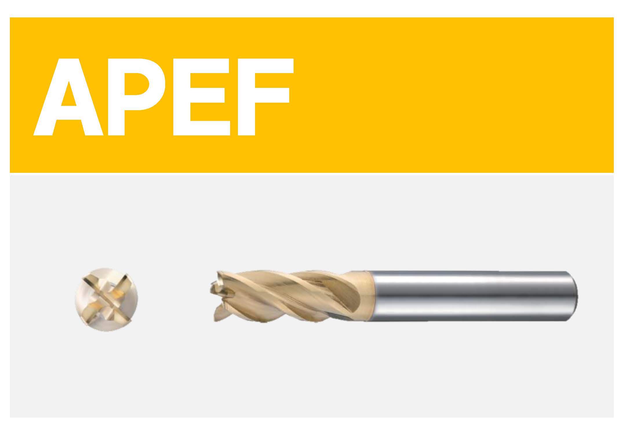 今回の目玉は、新発売のスチール加工用エンドミル「APEF」。1本で複数工程に対応する多機能モデルで、生産現場の効率化に大きく貢献します。