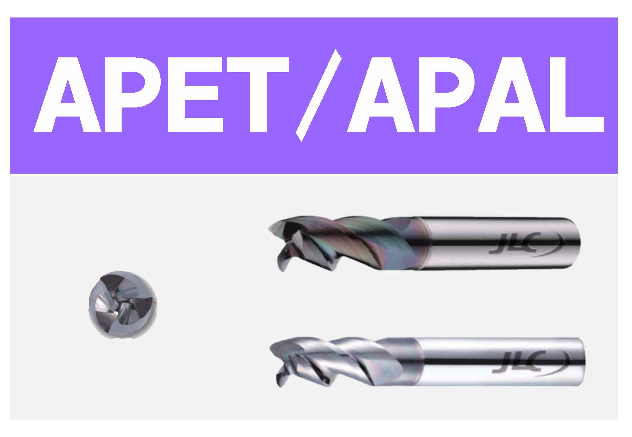ドリル・フライス加工に対応するバレット型3枚刃。スチール・ステンレス用APETとアルミ用APALをラインアップ。