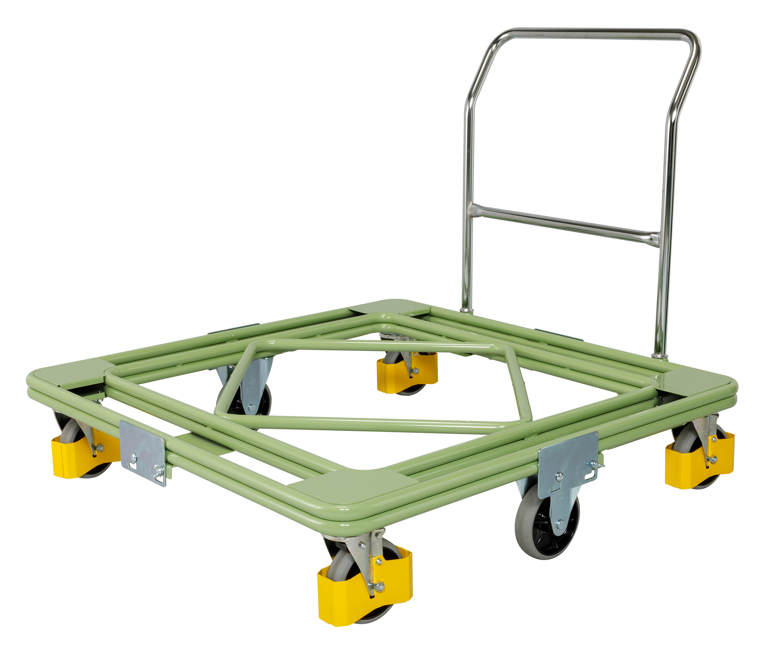 その場で方向転換ができるクイックターン方式を採用。独自の開発により旋回スペースが小さく小回りができ、狭い所でもスムーズに方向転換が可能。キャスターは巻き込み防止カバー付。