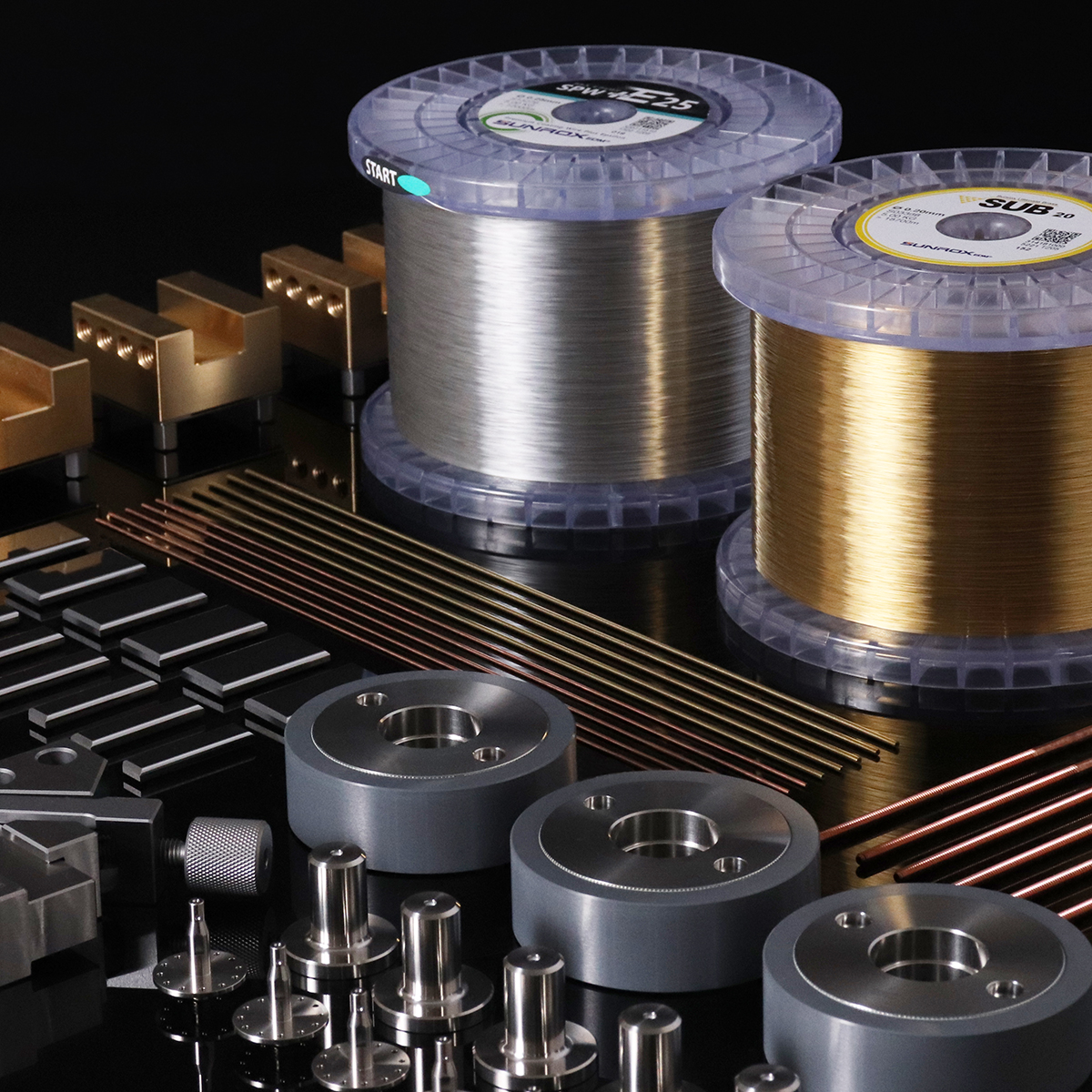 ⾃社ブランドSUNROX EDMを中⼼に、各放電加⼯機メーカー⽤に使⽤できる⾼品質なオリジナルアイテムを多数取り揃えています。