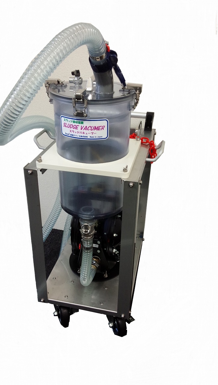 特許スラッジ回収装置は、フロートも装着でき液面・液中・沈殿スラッジとターゲットを絞って回収可能なマルチタイプ。油性・水溶性対応でしかも簡易脱水機工移動式スラッジ回収装置。