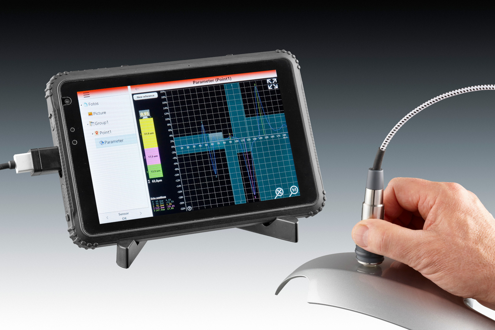 樹脂上の塗膜を最大8層まで多層測定可。評価ソフトウェアA-Scanをタブレットディスプレイ上に直接表示。
