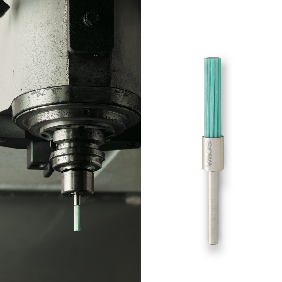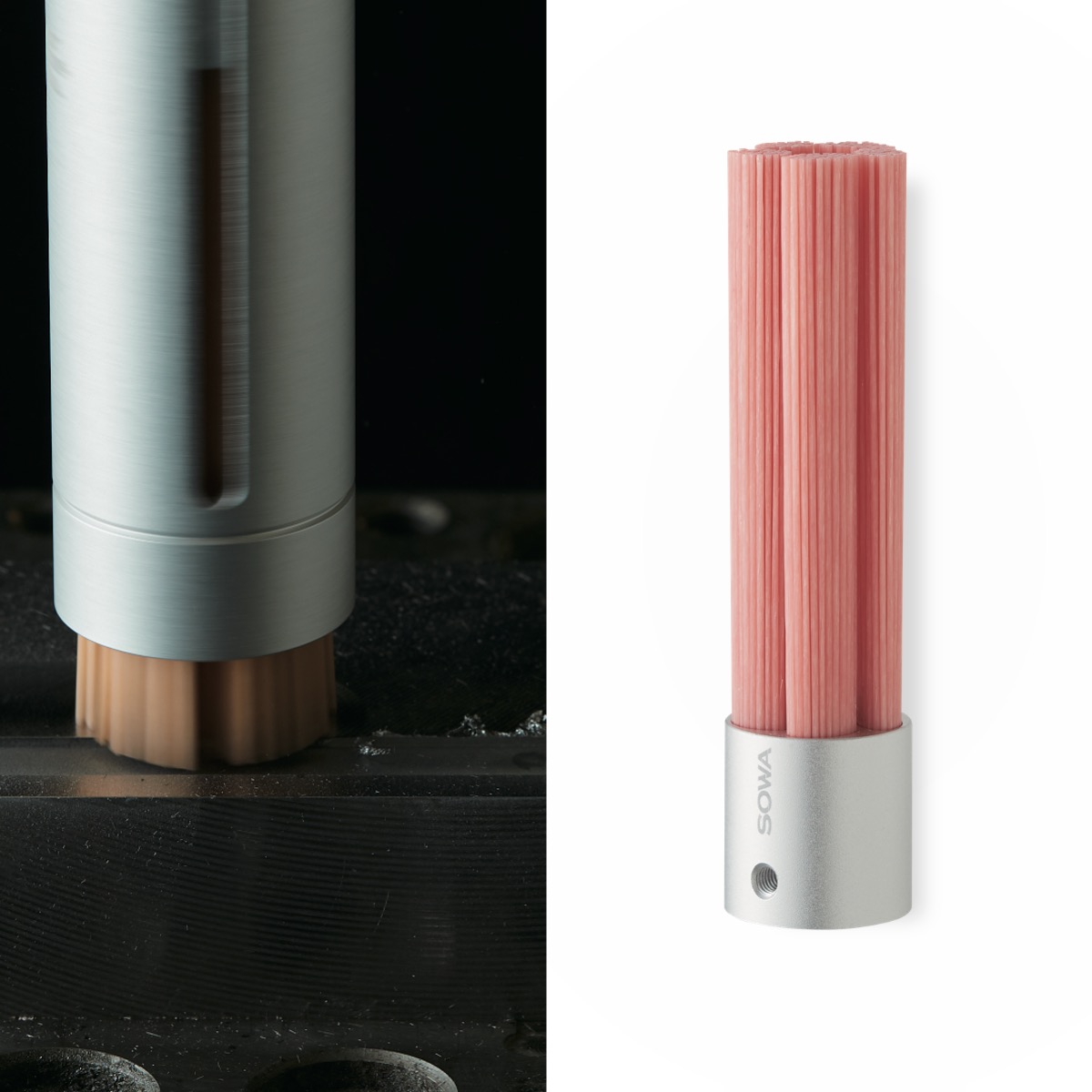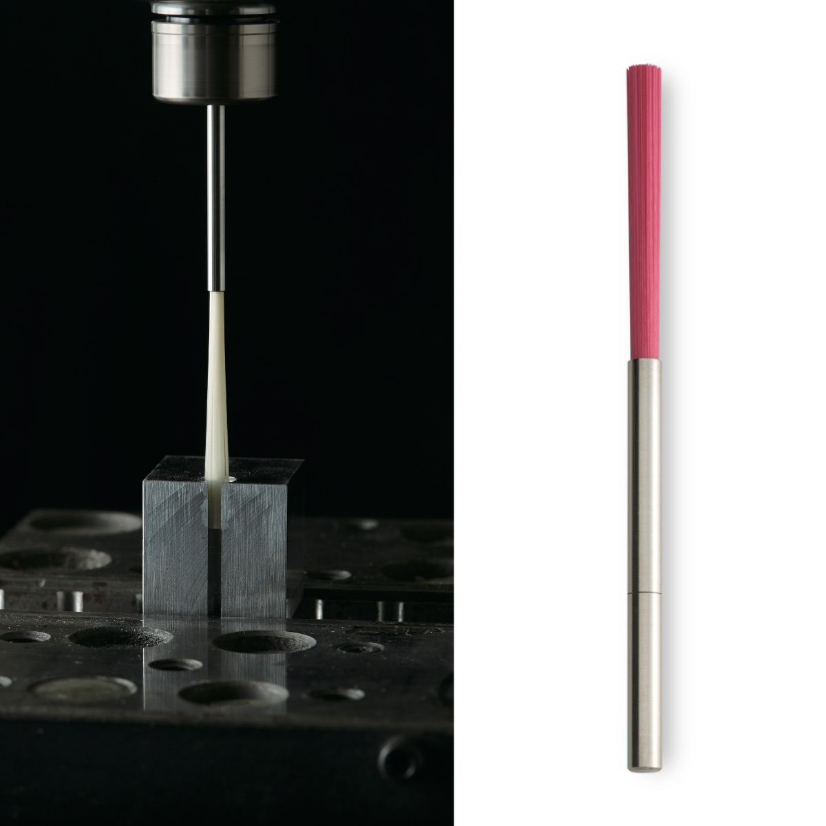 φ1~のラインナップで狭小箇所のバリ取り・研磨にも対応。ロボットや工作機械での自動化やハンドツールでの使用にも最適なセラミックファイバーブラシ。