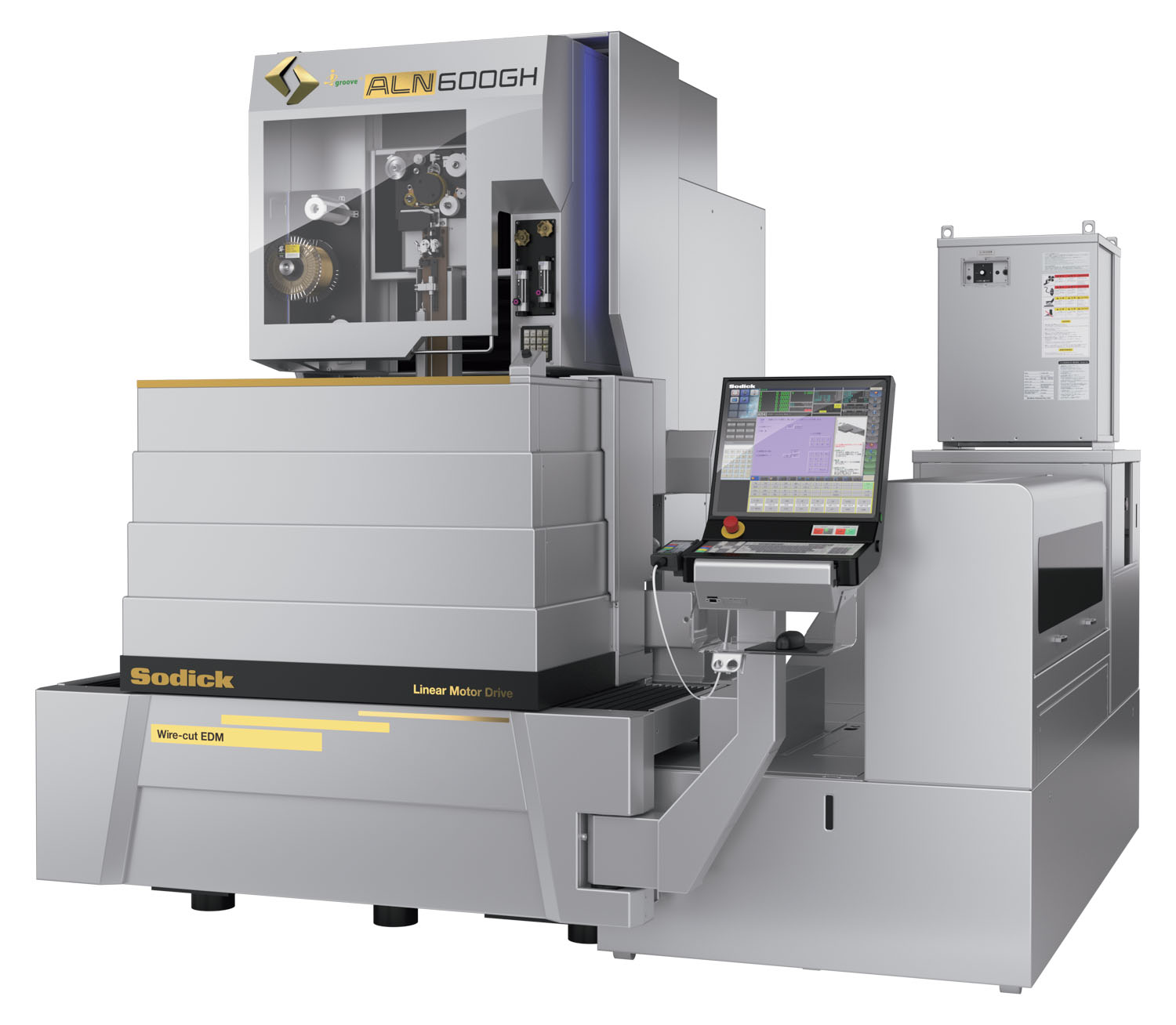 ワイヤ放電加工機「ALN600GH iG+E」はZ軸を350mmから500mmに拡張したハイコラム仕様で、さらなる厚物ワークに対応しつつ、省エネポンプシステムにより電力消費量を大幅に削減します。