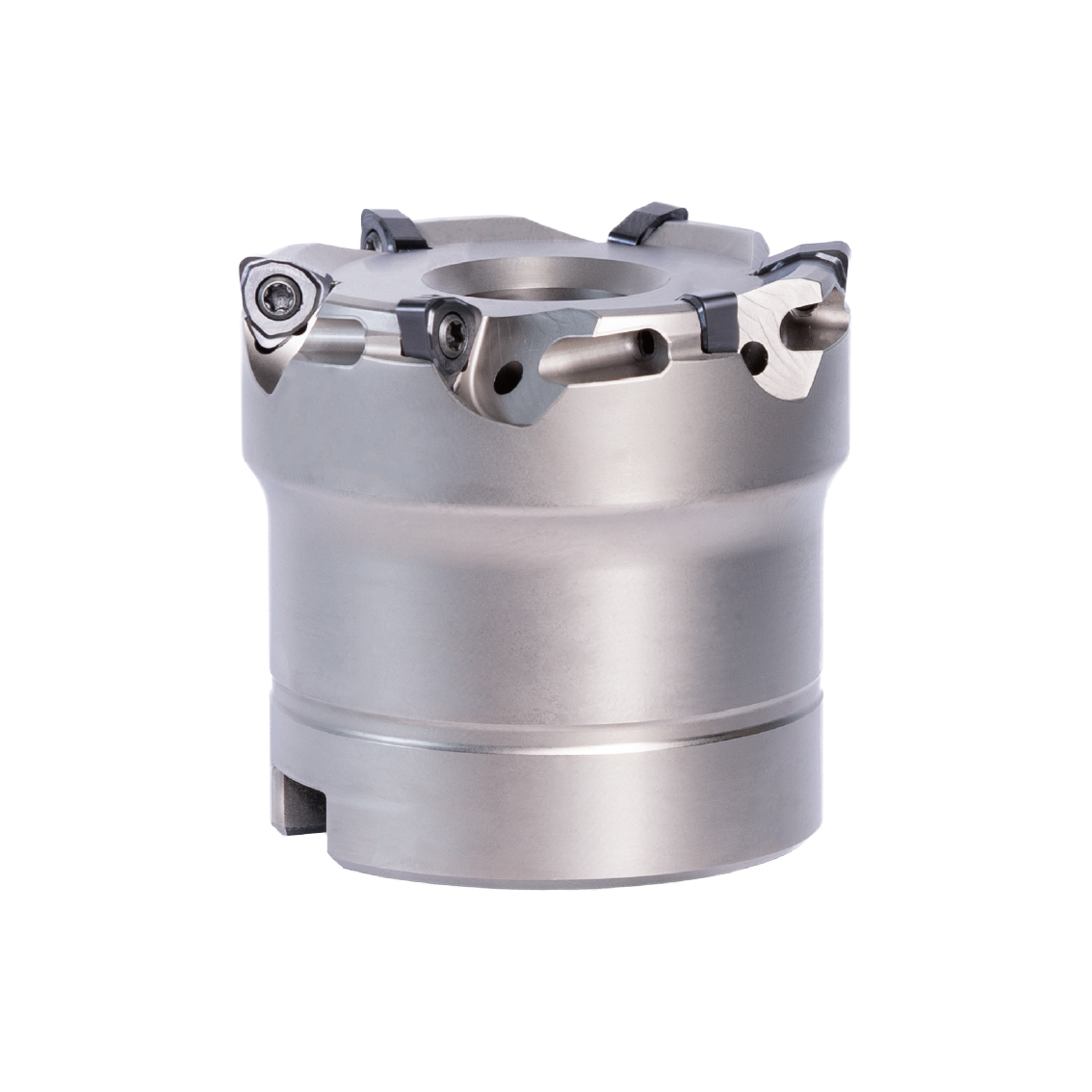 幅広い被削材において、高能率な平面加工が可能な正面フライスカッタ。インサートは、10コーナ仕様で経済的。27°の高送り切れ刃と45°の高切込み切れ刃で2種類の加工が可能。