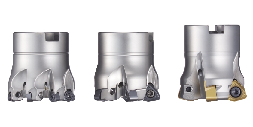 低切削抵抗かつ切りくず排出性に優れた肩削り加工用カッタ。切削抵抗を低減し、突き出しの長い加工や断続切削に最適。 新たに切れ味に優れたアルミ用インサートを追加ラインナップ。