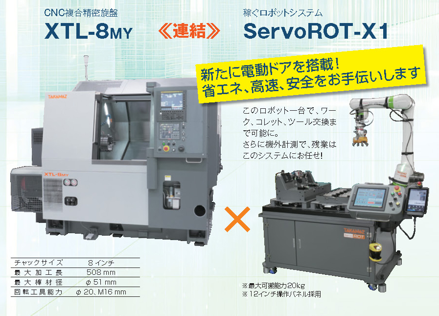 長時間無人運転を可能にしたServoROTシリーズ最新機種。 ワーク脱着に加え、コレットチャック、ツール交換を可能にしたシステムです。
