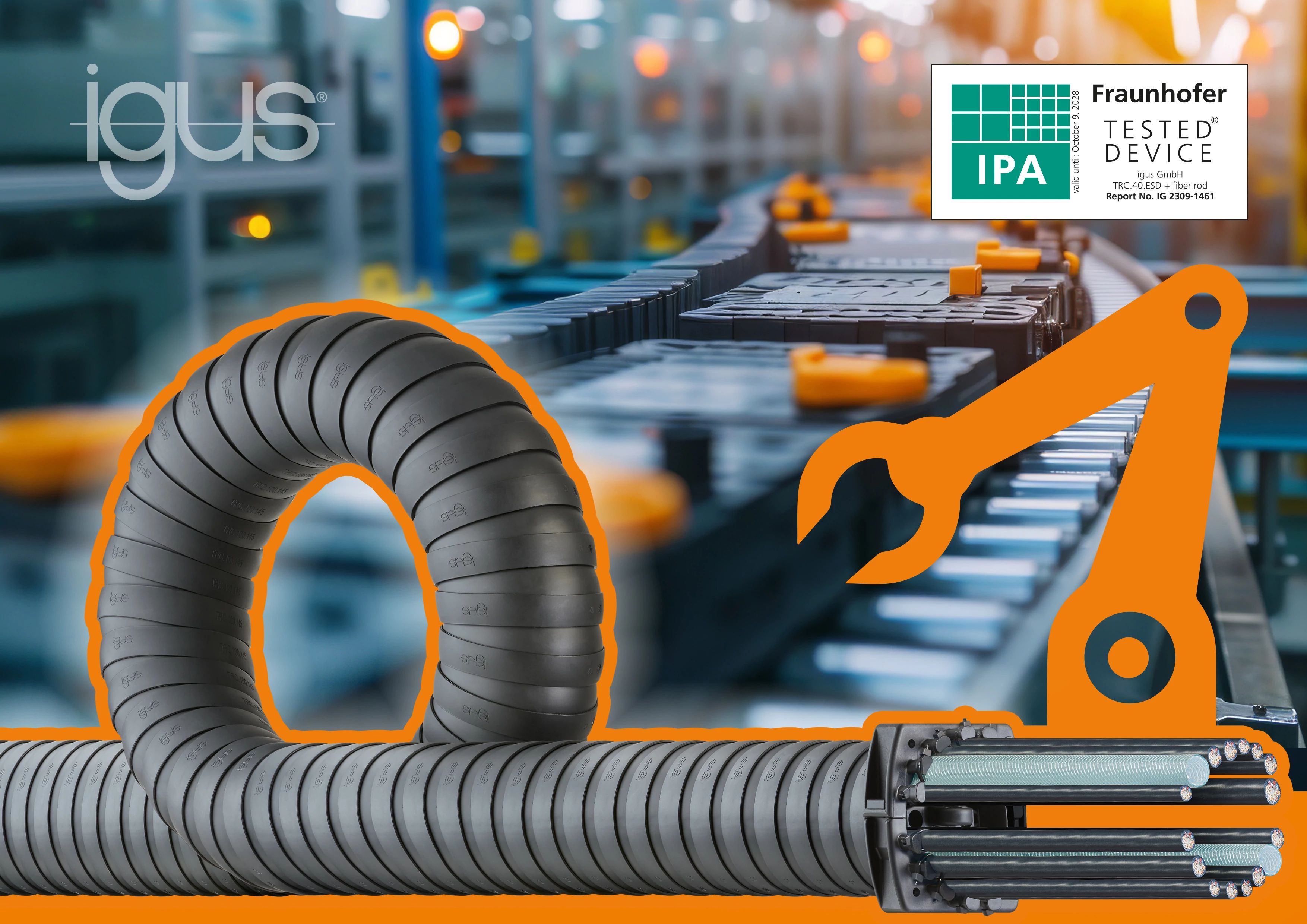 さらに自動化に欠かせないロボットシステムの構築における3D動作に適したケーブル保護管:トライフレックスR、高機能ポリマーによる静電粉体塗装用のイグリデュール コーティング パウダーも展示します。