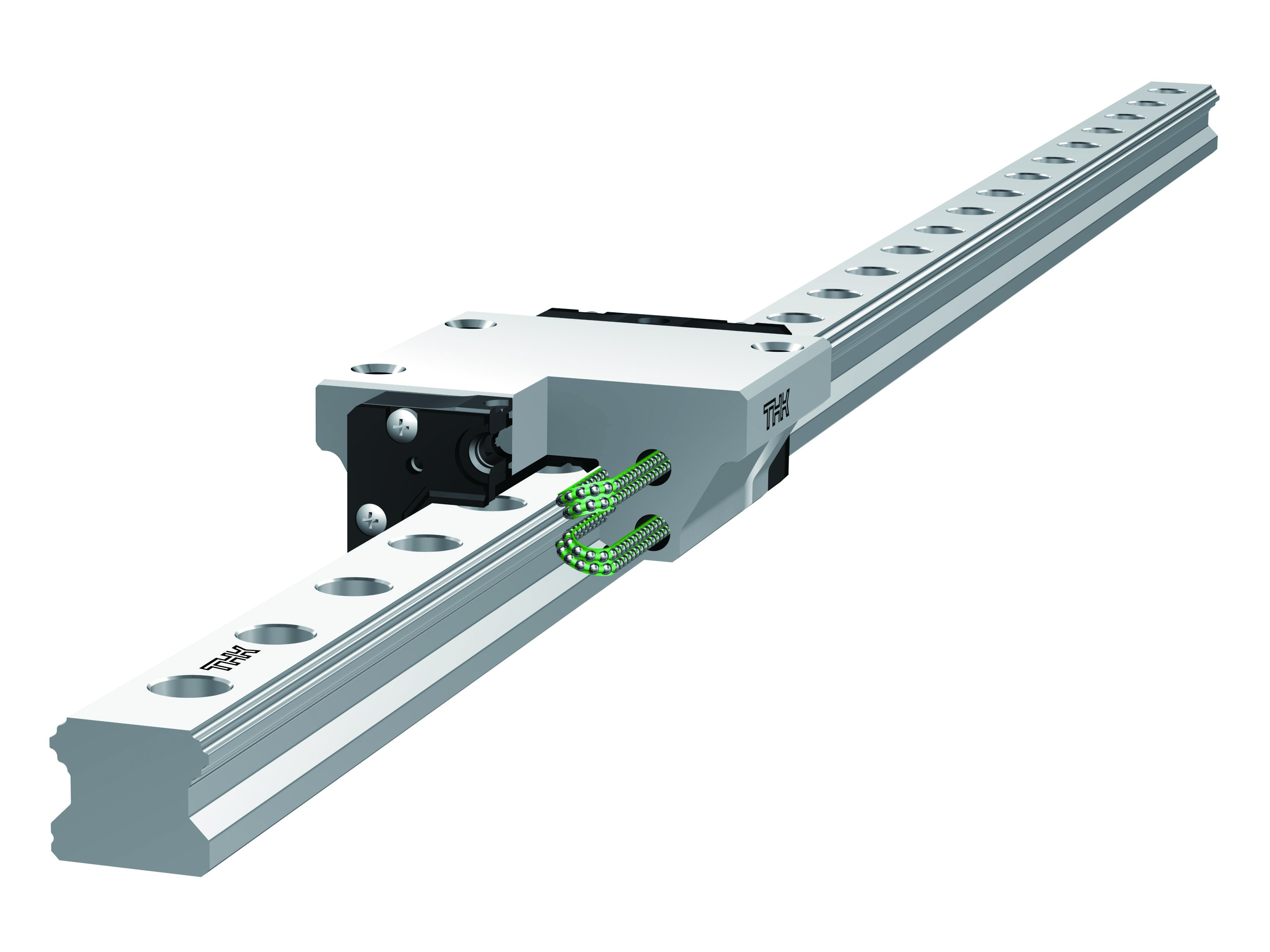 8条列の転動溝と小径ボールの採用により、LMブロック内の有効ボール数を増やしたことで、弊社LMガイドトップレベルのナノメートル単位の超低ウェービングを実現しました。