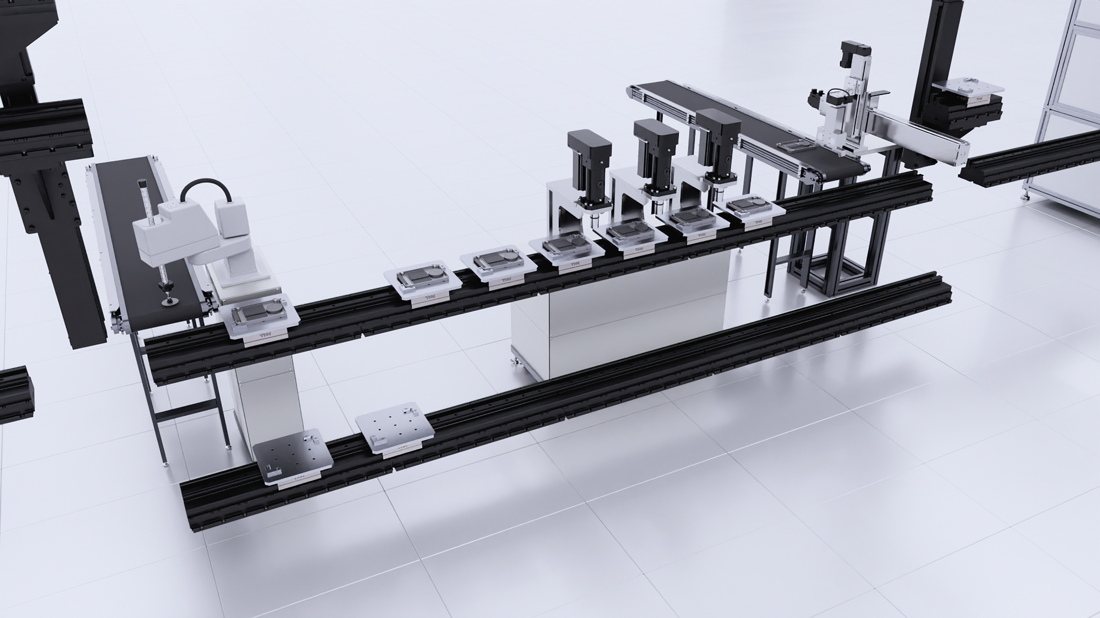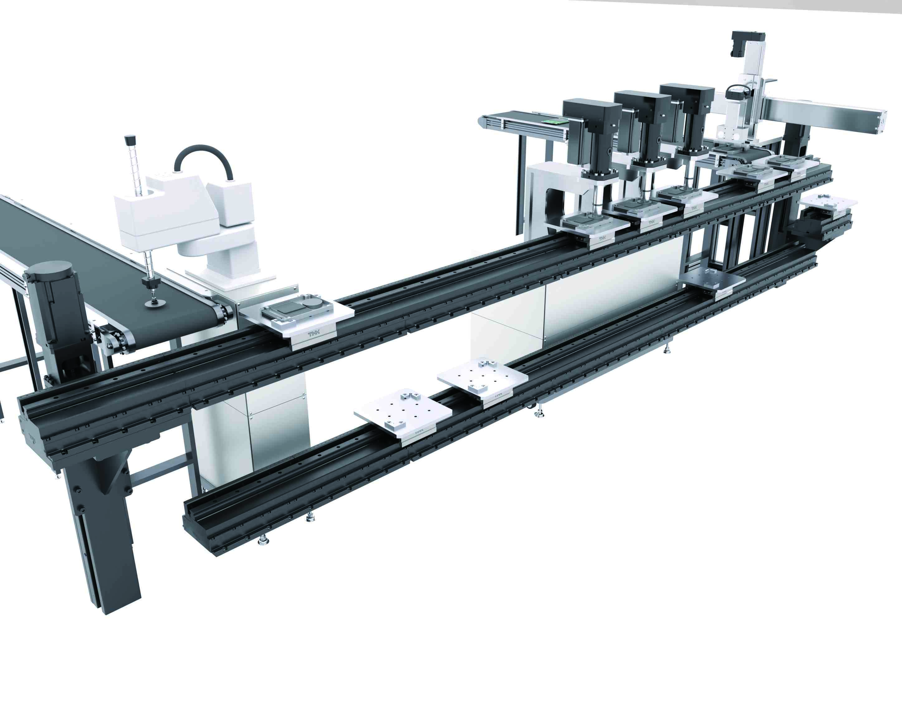 次世代リニア搬送システムは、変種変量生産に貢献するフレキシブルな高速搬送システムです。駆動にはリニアモータを採用し、高速・高加減速で自在な搬送を実現いたします。