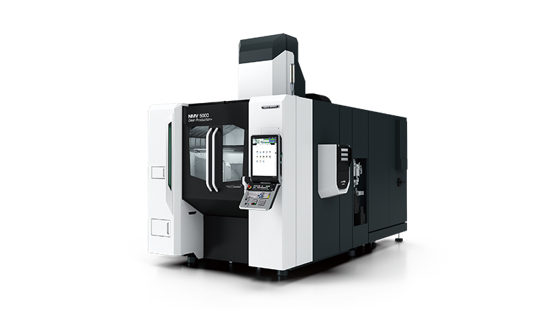 5軸加工機「NMV 5000 DCG」に歯車研削ユニットを搭載し、ミーリング、旋削、歯車荒切りから歯車研削までを1 台の機械に工程集約することが可能です。
