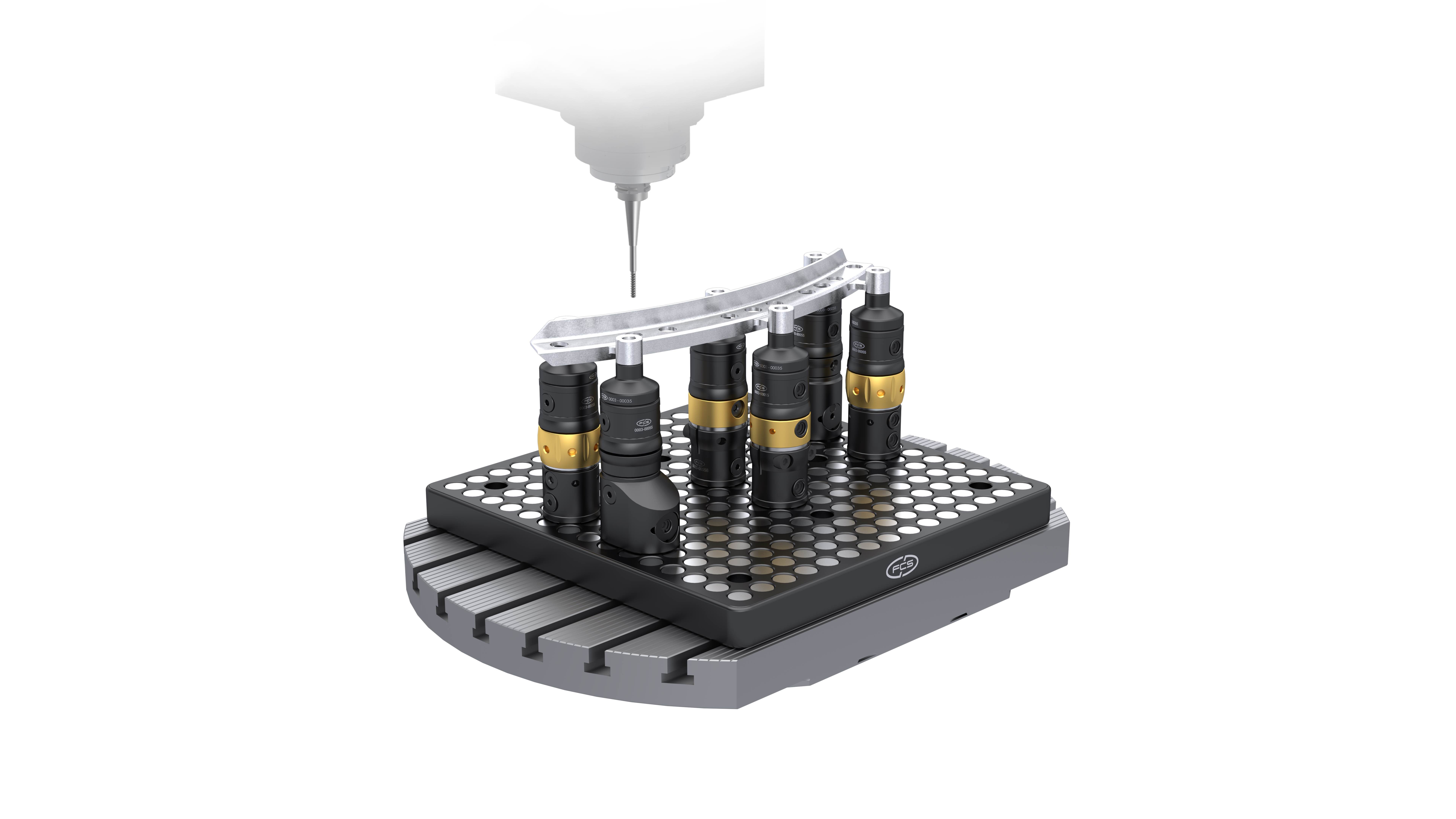 多品種ワークに柔軟対応できる高さ・横方向調整式ユニット 航空・宇宙分野の高精度部品加工にも対応するFCSクランピングシステム