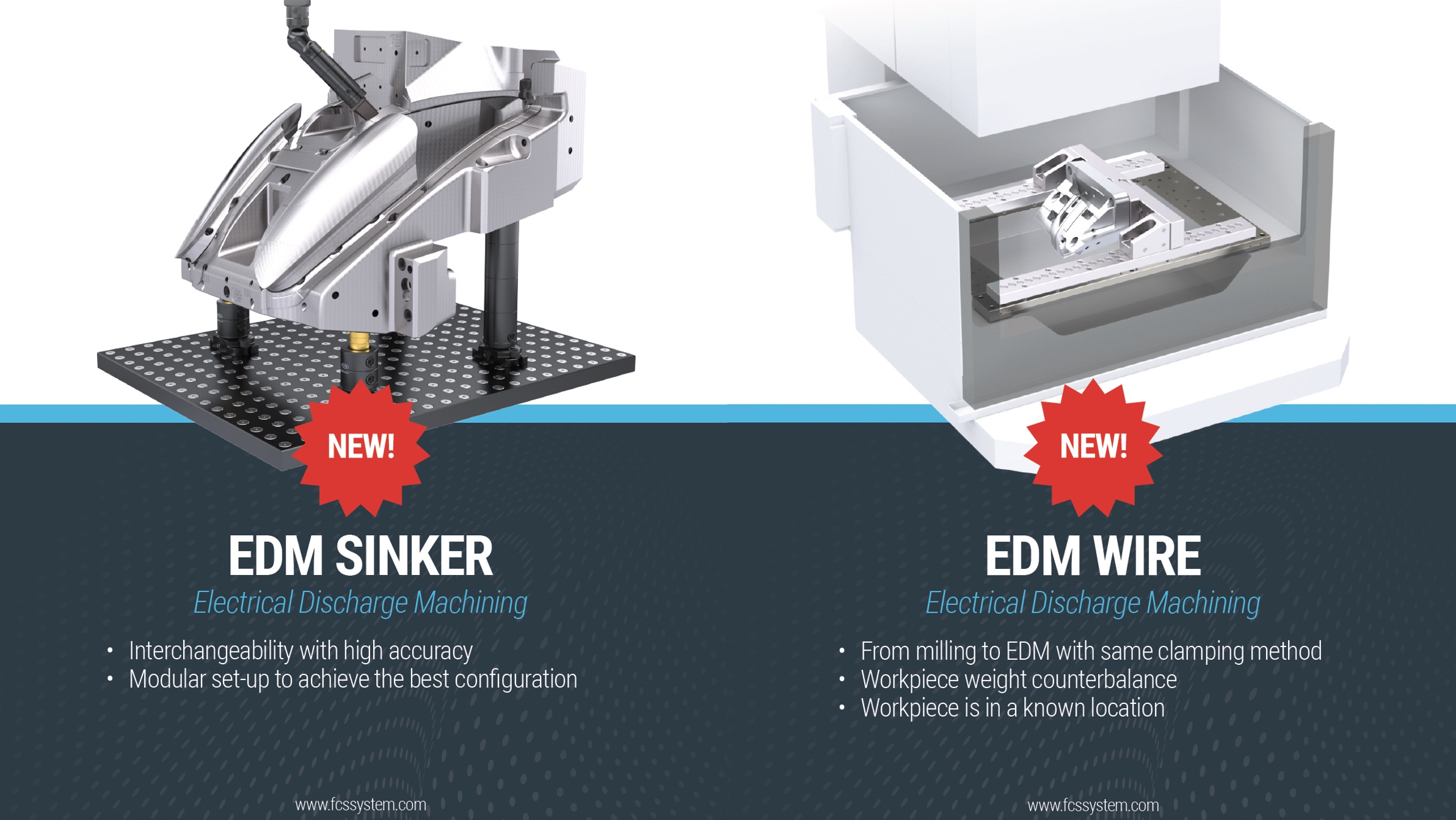 型彫放電、ワイヤ放電加工にも対応するFCSクランピングシステム