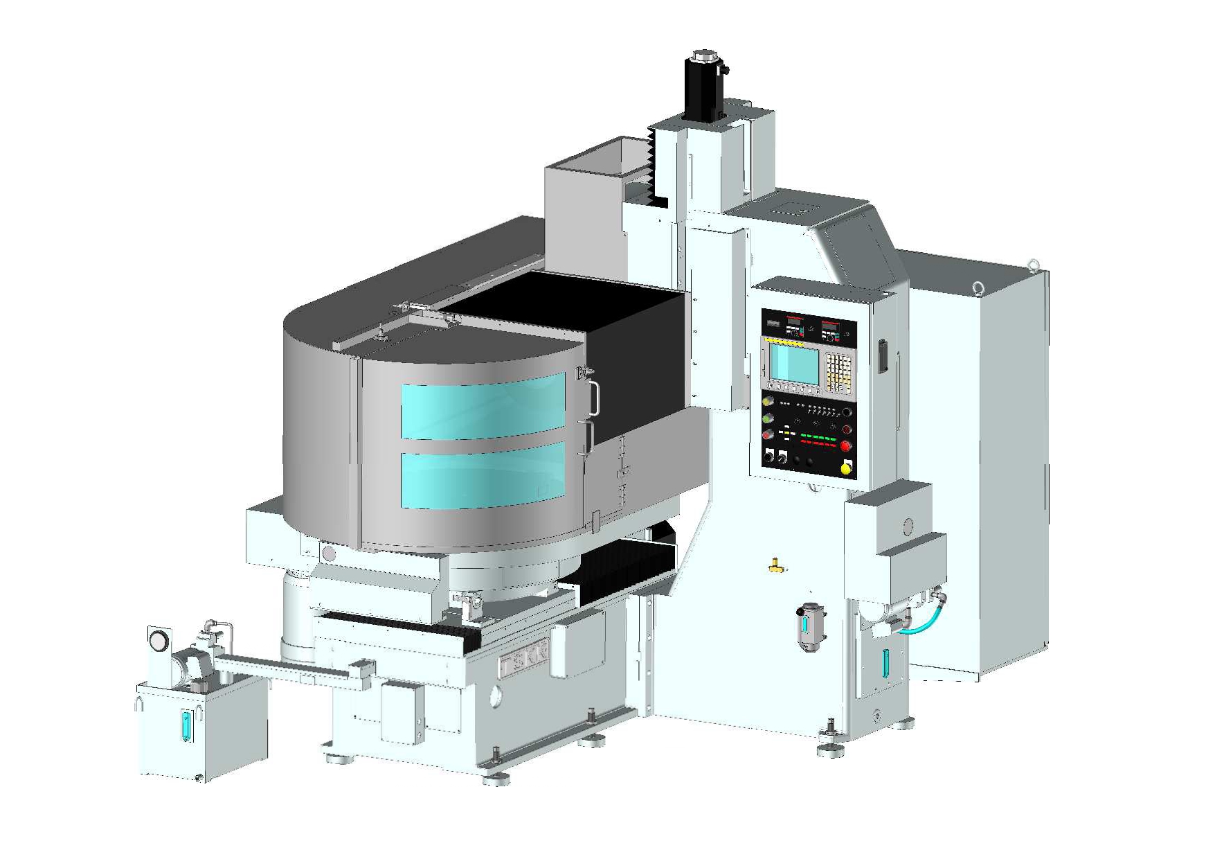 今回の出展製品は、CNC横軸ロータリー平面研削盤TR80NC型に、環境に配慮したミスト拡散