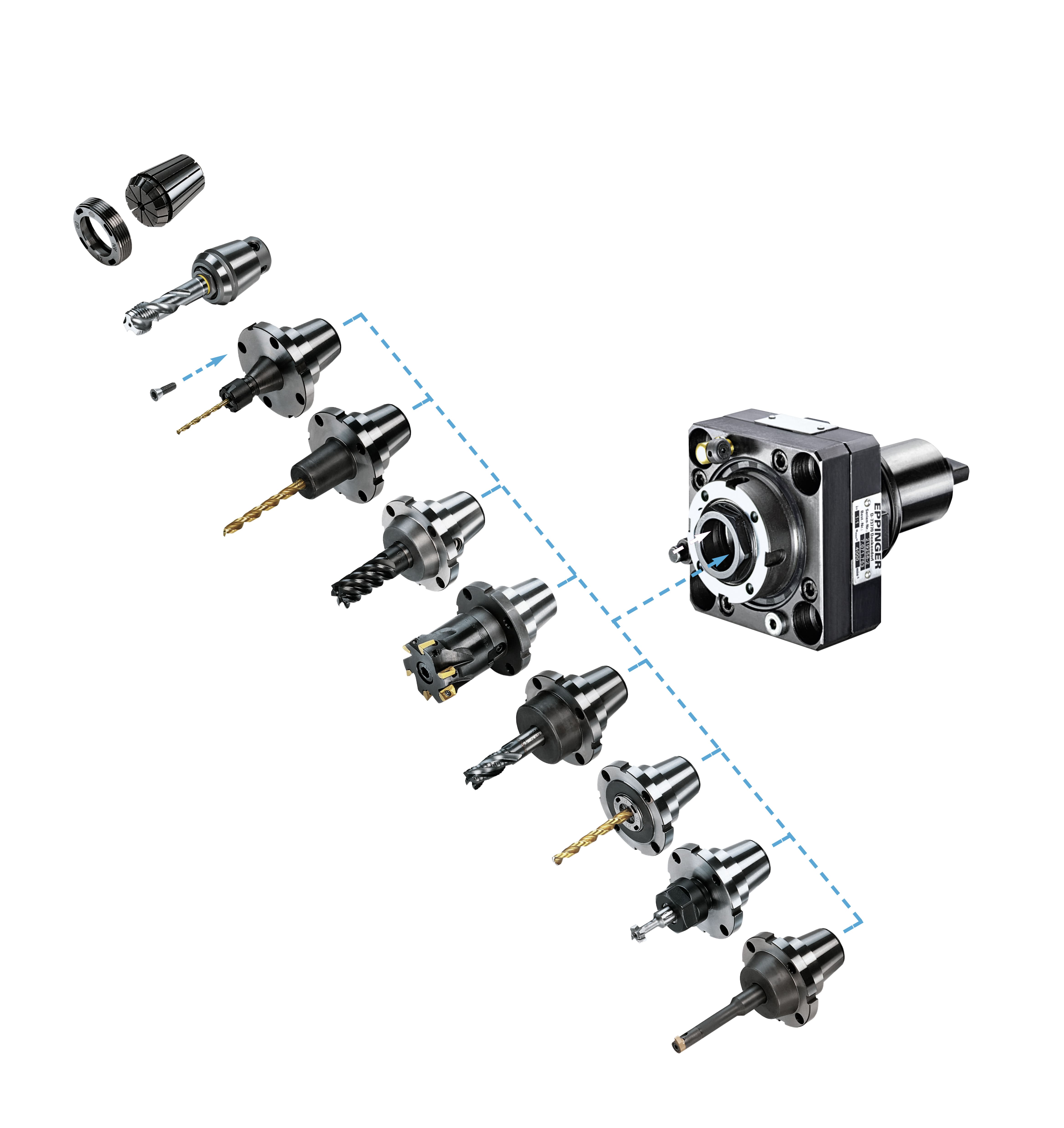 テーパーローラーベアリングを標準採用しており、モノブロック化、歯車軸と歯車が一体構造と二面拘束で剛性向上。本体がコンパクトで加工範囲が広くとれます。