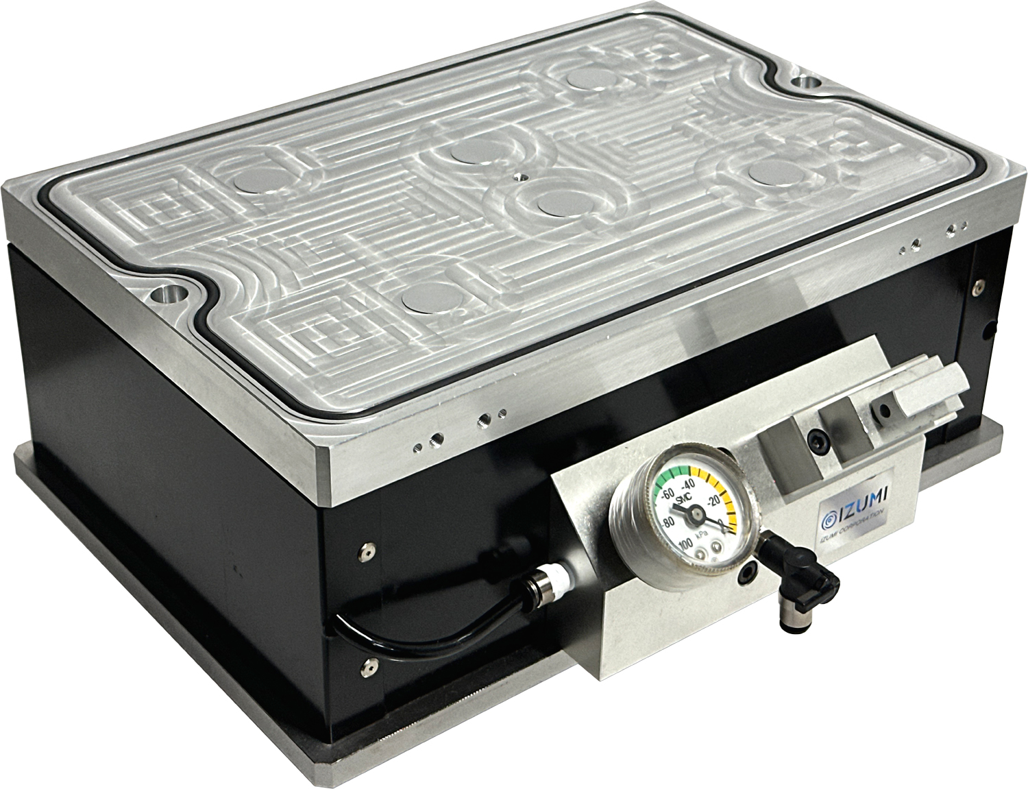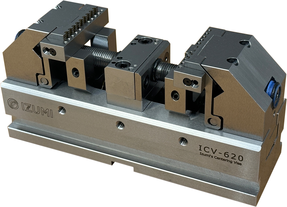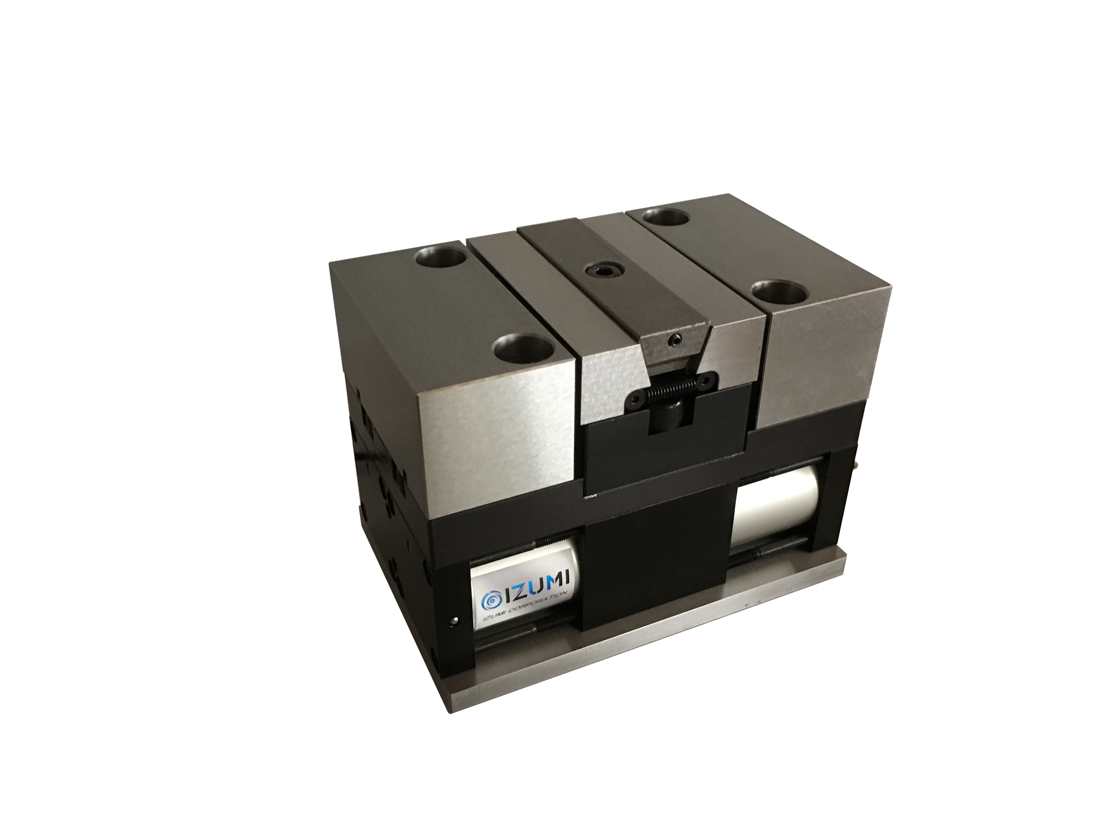イズミコーポレーションは長年にわたるフライス盤及びマシニングセンターによる精密部品加工分野での経験を生かし、現在はマシニングセンター加工の高効率、高精度、治具レス、無人化をコンセプトとした汎用治具バイス ”ディペンドバイスシステム” をメインに工作機械用各種ワーククランプシステムを製造販売しております。生産現場の視点に立って、お客様に信頼して頂けるユニークな製品開発を続ける事が使命と考えております。