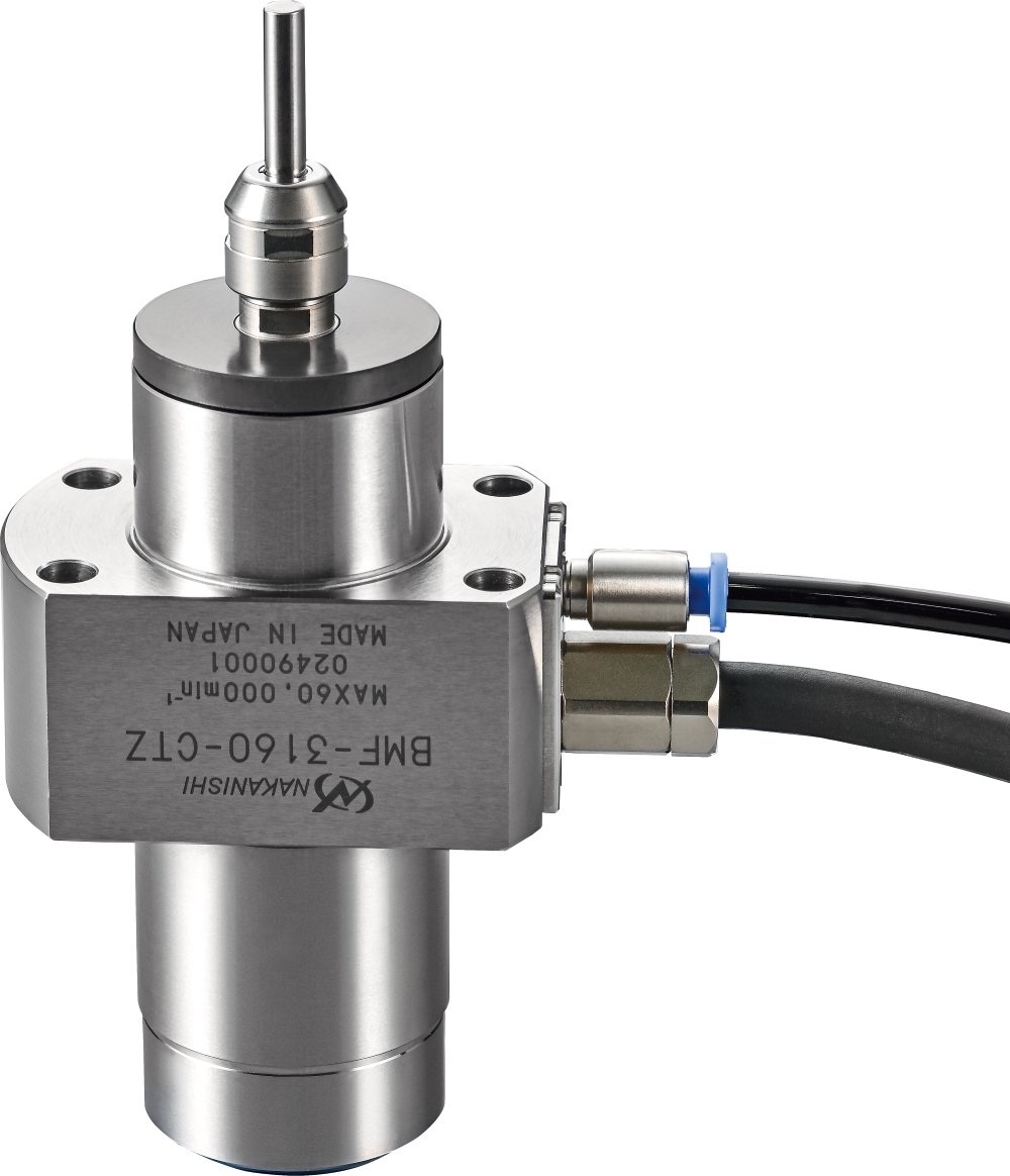 Max.60,000min⁻¹、全長98.4mm の小型高速回転スピンドル。電動モータによる様々な制御機能で安定した加工性を実現し、精密部品のタクトタイム大幅削減に貢献。
