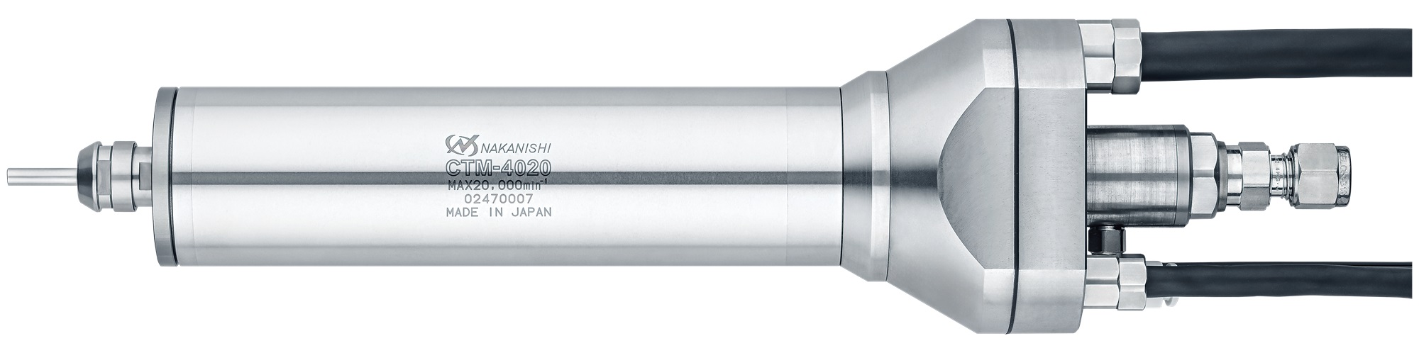 Max.30,000min⁻¹、全長 115.8mmのクーラントスルーモータスピンドル。20MPaの高圧クーラントで「小径×深穴×ノンステップ」により生産タクトを大幅削減。