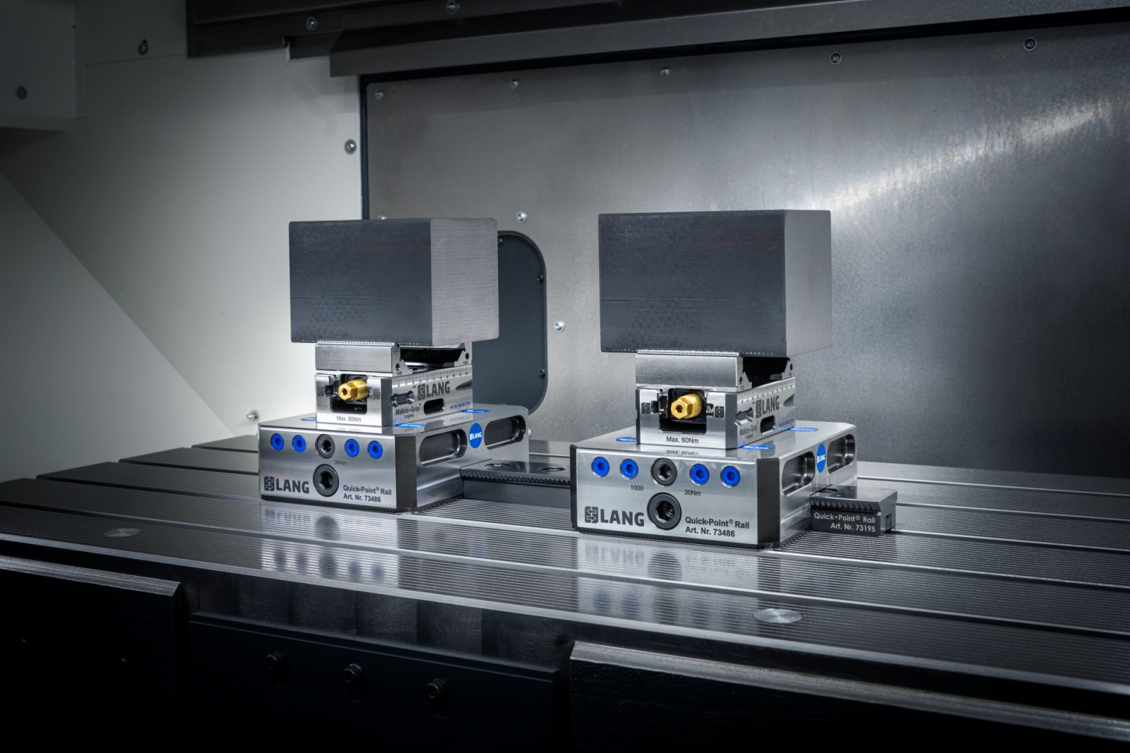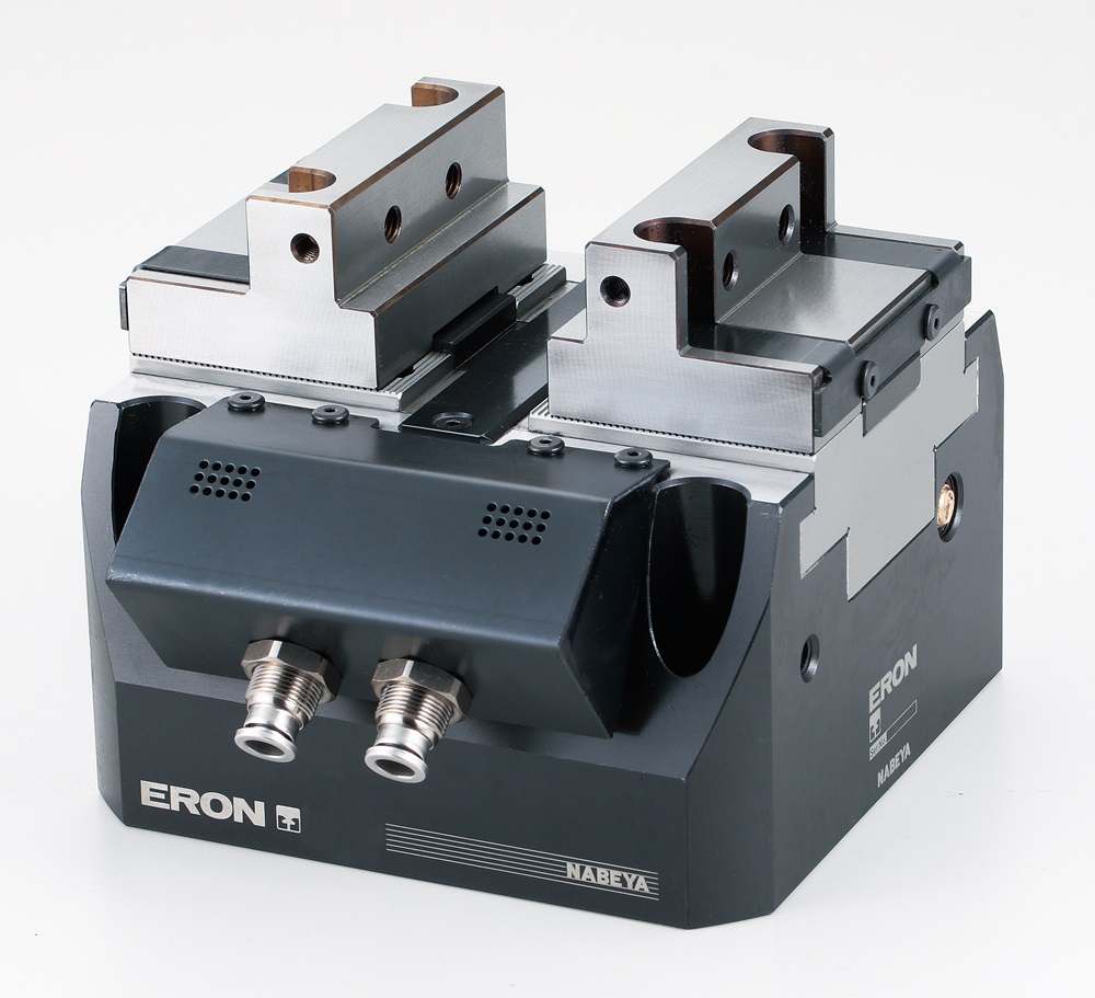 エアー供給でクランプ/アンクランプを自動化できるセンタリングバイス。 常にバイスの中心でワークをクランプし、高精度な繰り返し位置決めなので、ワーク交換の自動化が可能。