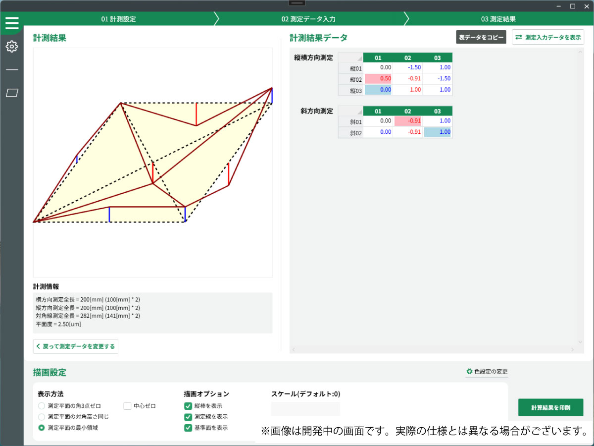 レベルニックとパソコンをケーブル又は無線接続し、使用することで平面度・真直度等の計算が簡単にできます。