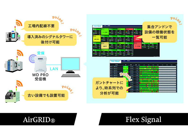 パトライト製の無線機「AirGRID」と東海ソフト製「Flex Signal」を組み合わせたデモをご紹介。お客様の現場に合わせたソリューションをご提案致します。