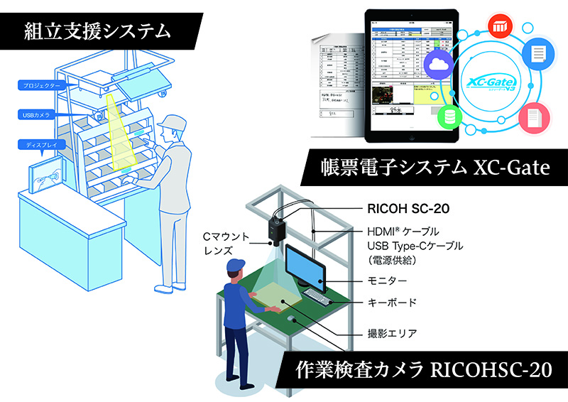 テクノツリー製帳票電子システムを組み合わせたOKI製プロジェクションアッセンブリーシステムとリコー製作業検査カメラのご紹介。現場の組立工程の品質向上を実現します。