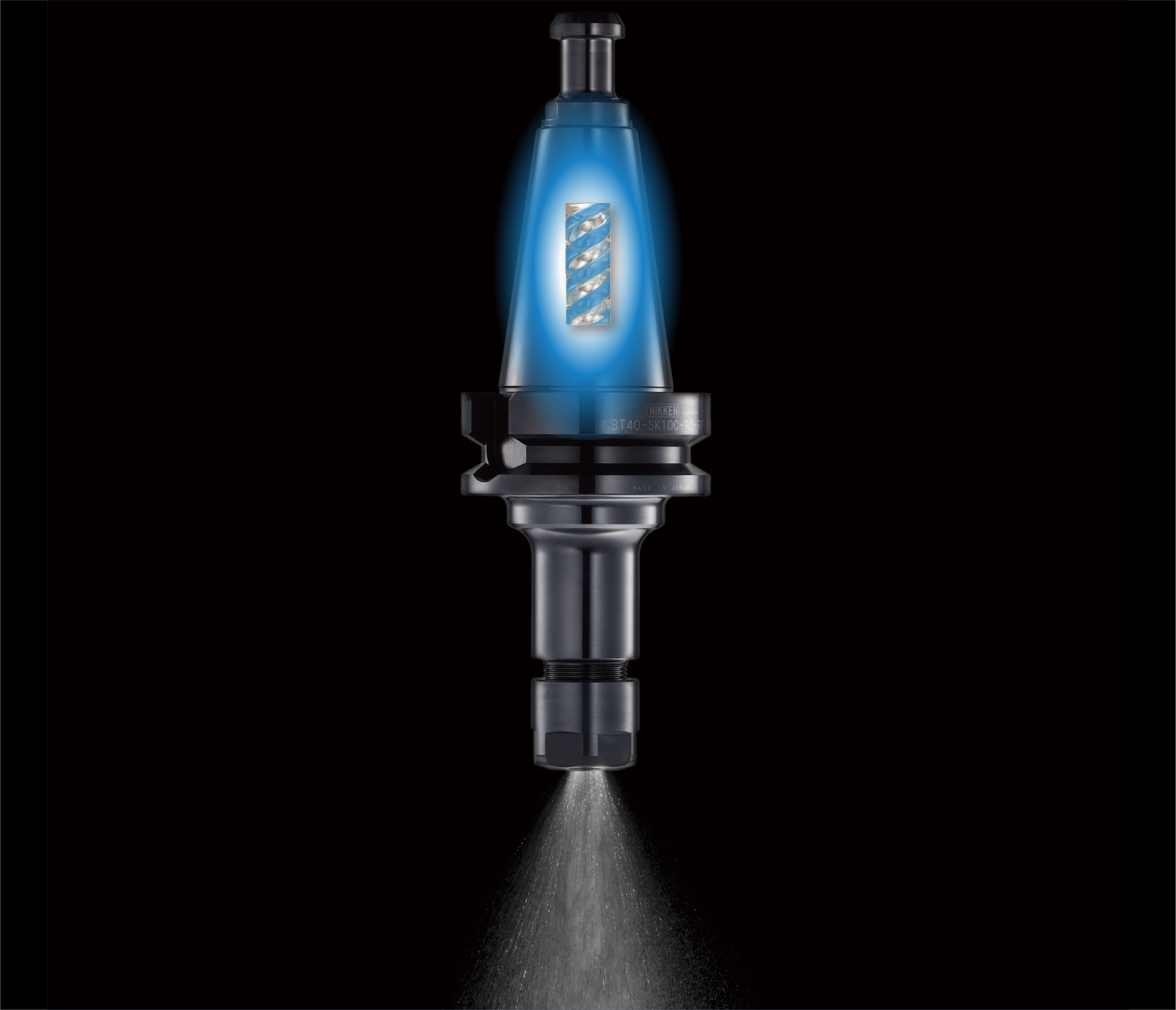 らせん構造をもつ独自のナノクーラント発生装置が、1m㍑当たり約1.5億個のナノレベルの粒子を発生させ、水溶性クーラントの腐敗や悪臭を抑制して工場環境の改善に寄与