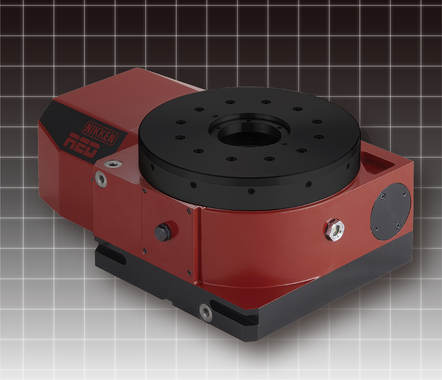 小型M/Cで最大φ500の大型ワークを5軸加工!傾斜軸の中心位置を下げ、更に加工領域を拡大した高剛性・高精度・高速割出可能なバレルカム新機構搭載REDテーブル最新モデル