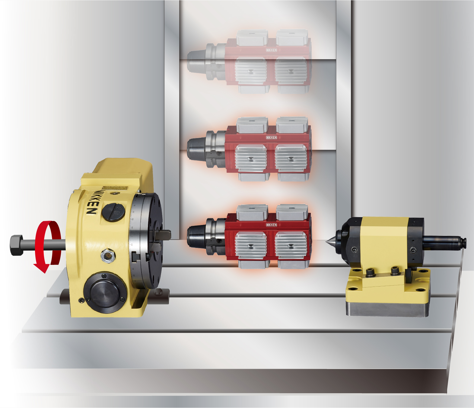 日研がツーリングで培って来たテーパによる高精度なクランプ技術を、治具の脱着に用いることで、高い求心性と結合力を発揮させる、世界で最も簡単な超高速芯出しシステム