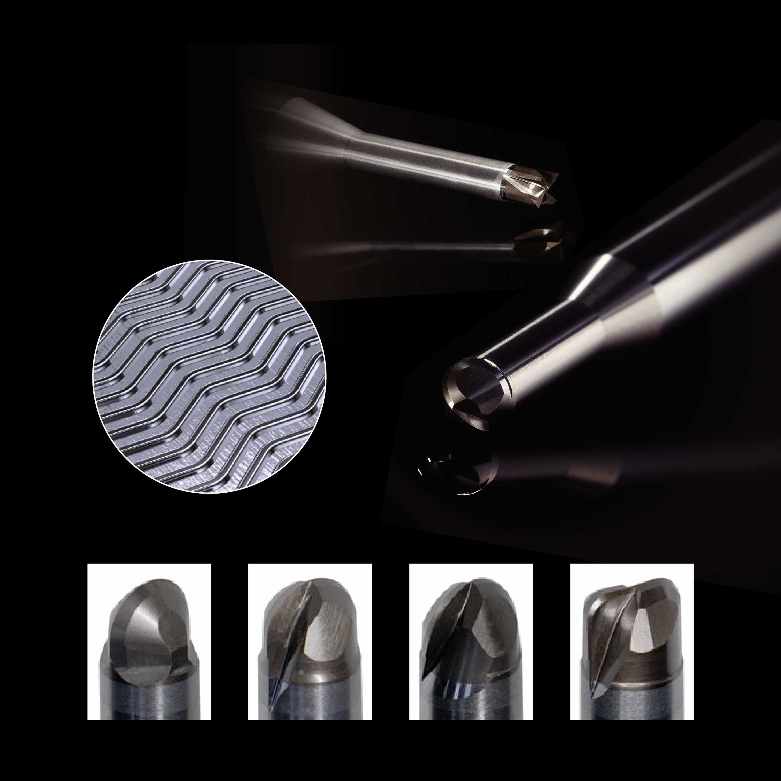 高速加工機を用いた切削加工において、高硬度鋼から超硬合金などの硬脆材まで、 ナノレベルの仕上げ面品位を得ることを目的に、多様な技術要素を開発して誕生したエンドミルです。