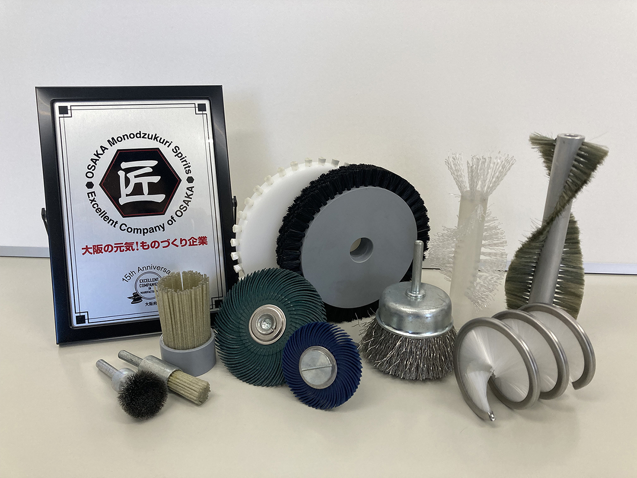 バリ取り機用専用ブラシを含む各種研磨材の製品を展示します。バリ取り面取り表面研磨に最適製品をご提案致します。
