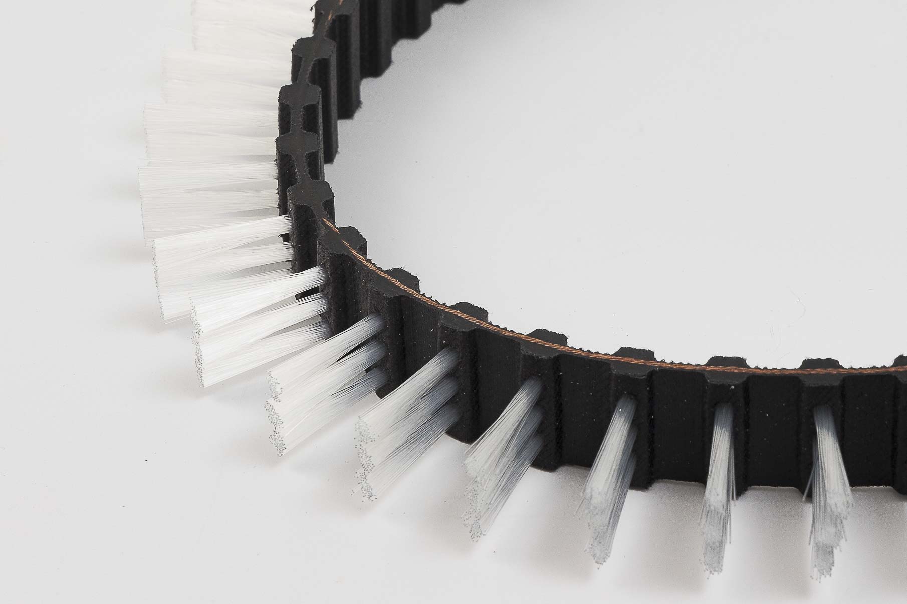 タイミングベルトブラシ 搬送とブラッシングを一体化。高精度な位置決めと処理を同時に実現。