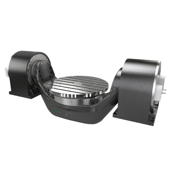 最高回転速度1,000min-1に達する高速版を出展。ハイウィンのロータリーテーブルは自社製トルクモーター搭載のDD方式。同期5軸加工に最適。