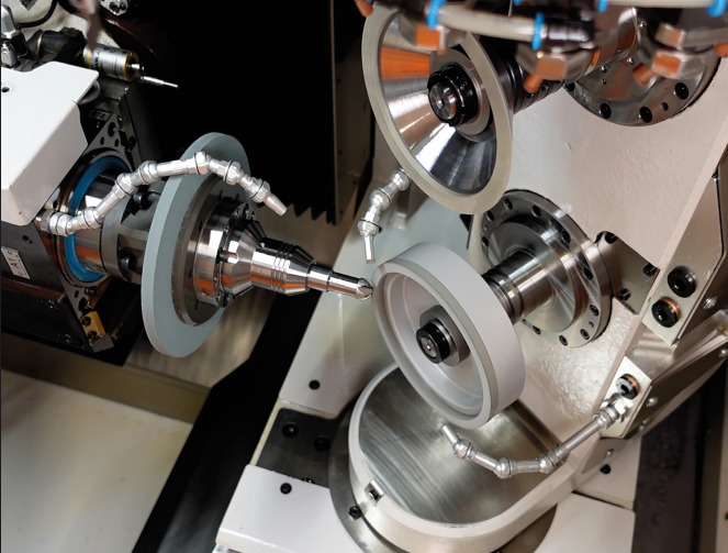 また、超硬工具およびPCD工具の研削・放電加工に対応する「VHybrid 260」は、垂直に配置された2本のスピンドルにより、多面加工を実現。下側スピンドルは研削と放電の両方に対応し、ジェネレーター「Vpulse EDM」を搭載することで、極小マイクロツールにおいても、卓越した精度・性能・表面品質を発揮します。