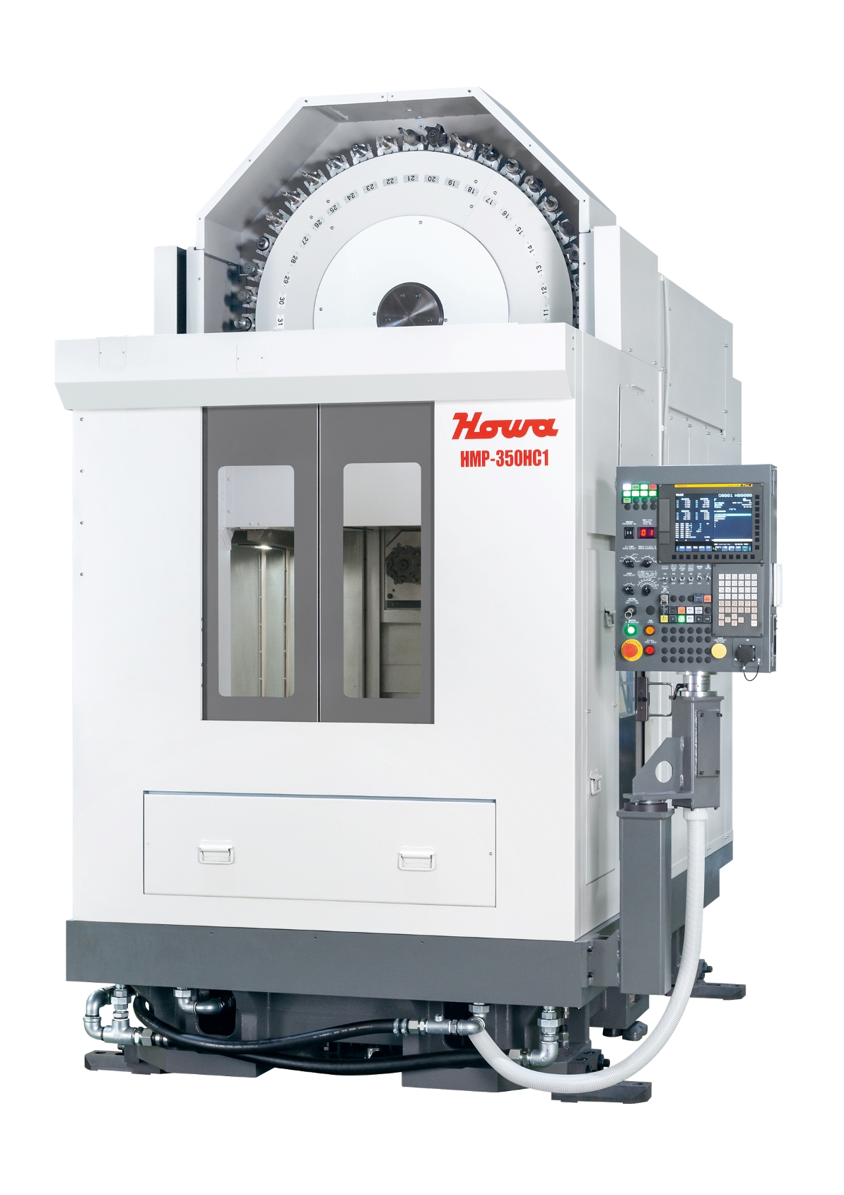 当社ブースにおいては、「止まらないマシン」より#30横形マシニングセンタ「HMP-350HC1」を出展。