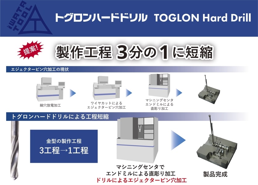 従来の5~15倍のスピードでのヘリカル穴加工を実現。複数の穴径や溝加工、側面加工も工具一本で対応可能にし生産性向上に大きく貢献します。待望の鉄・ステンレス用も販売可開始。