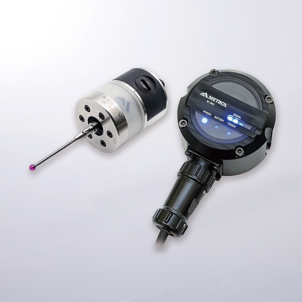 CNC工作機械やロボットでワークの芯出しや加工後の寸法計測をする、国産のワイヤレス3次元タッチプローブです。 配線が難しい5軸加工機やロボットでも安定した通信が可能です。