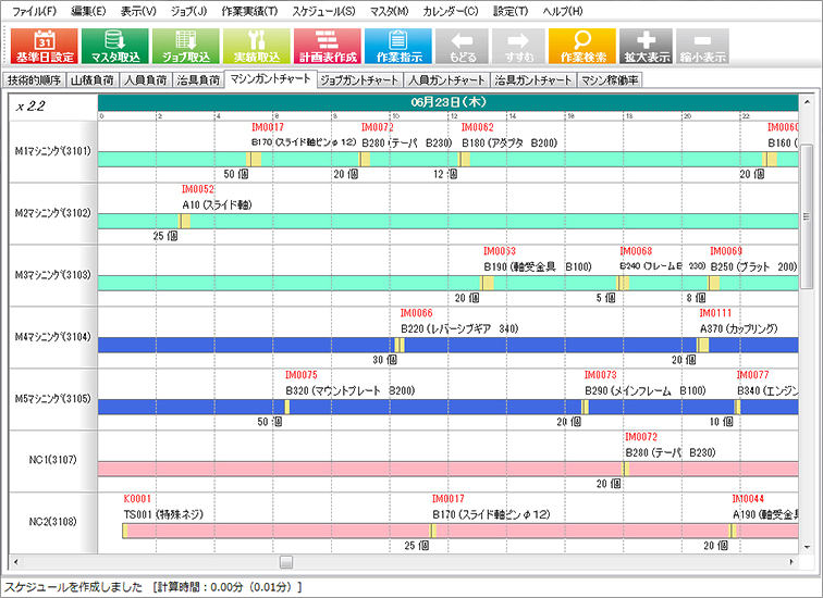 多品種少量繰り返し生産、個別生産を行っている部品加工業向けの工程管理システムです。 工程管理システムと自動スケジューラの連携が実現しました。