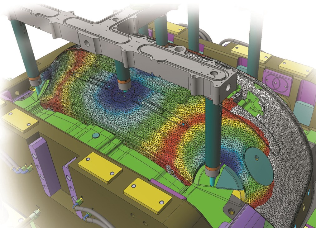 プレス金型の工程設計から成形シミュレーションまで支援し、板材挙動を可視化して最適な加工順や型構成の検討を効率的に行えます。