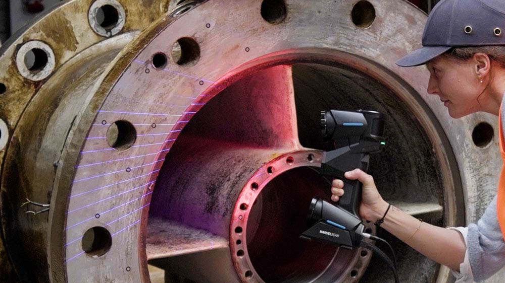 大型から小型部品まで幅広く対応。リアルタイムトラッキングで揺れや振動にも強い設計。マーカー不要、すぐに使える高速・高精度3Dスキャナーで、現場のスピードと信頼性を両立。