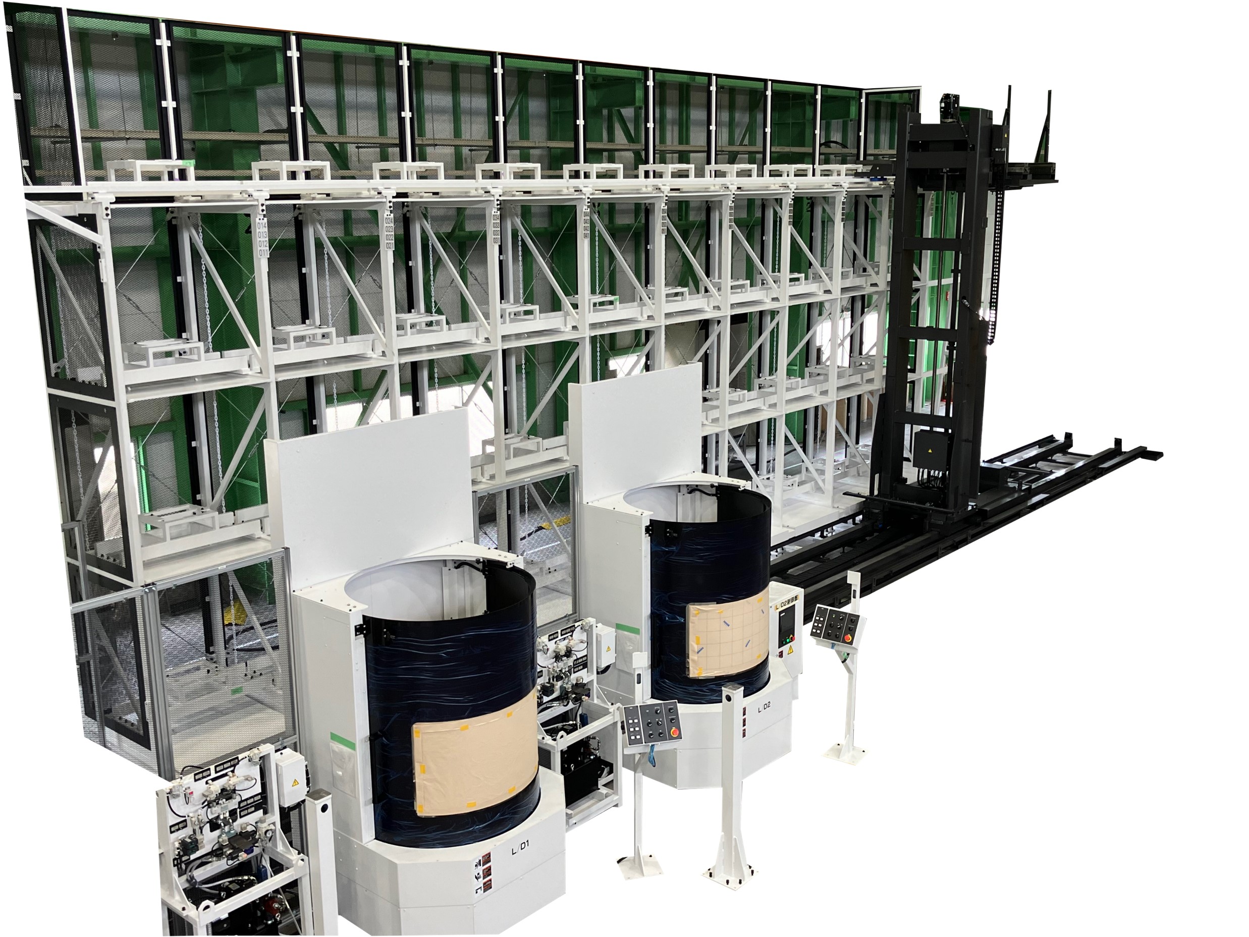 立体式とすることにより省スペースでパレット収納枚数を増やすことができます。夜間・休日の長時間無人運転を実現し、お客様の生産効率を向上させます。