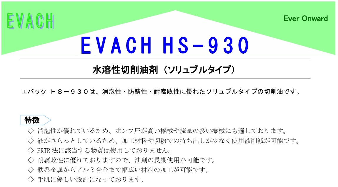 超硬合金の工具研削油として開発した製品。 超硬合金研削ユーザーで抱える問題である、使用液変色、消泡性・洗浄性、刺激性を改善した製品。