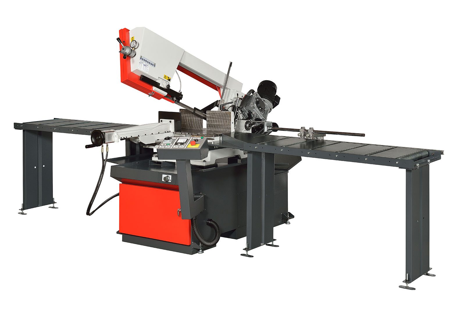YCM-420 SAIは、形鋼や金属プロファイルの角度切断に適した半自動片持ち帯鋸盤